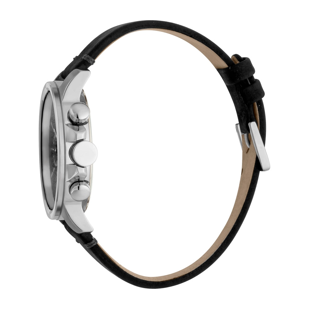 Esprit watch mens black leather strap and silver stainless steel case with grey dial