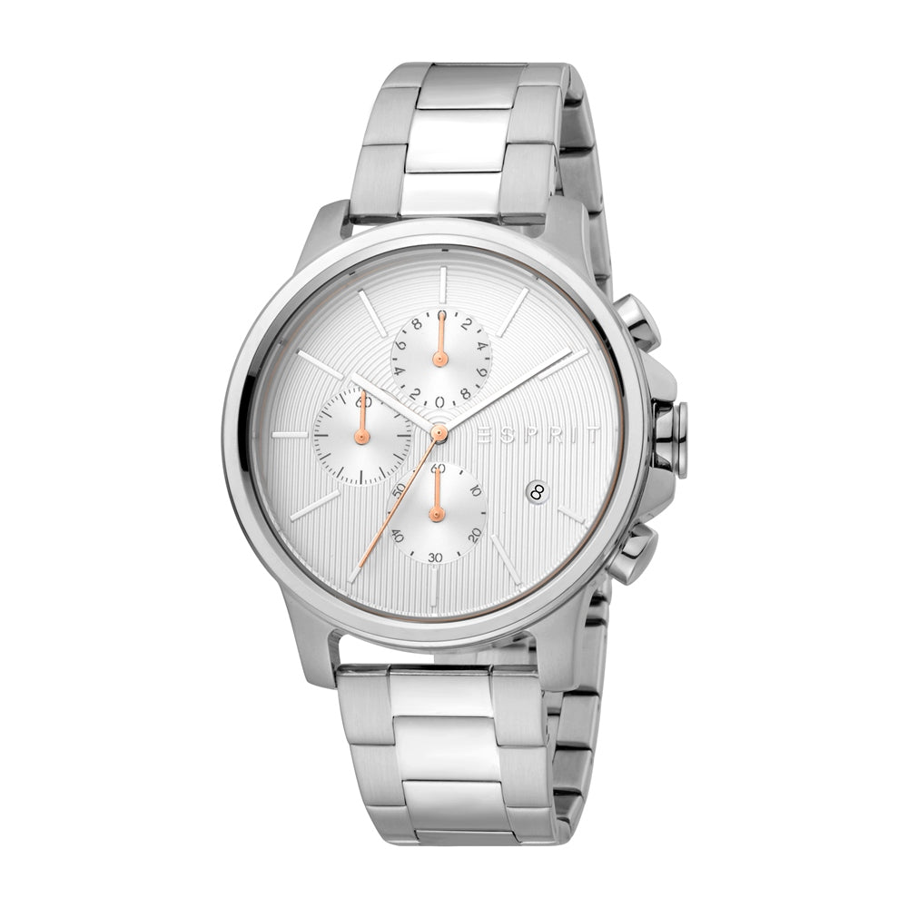 Esprit watch mens silver stainless steel bracelet white dial with date