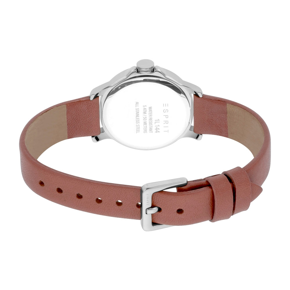 Esprit Ladies Watch Old Rose Leather Strap With Silver Color Case & Stone Inside The Dial