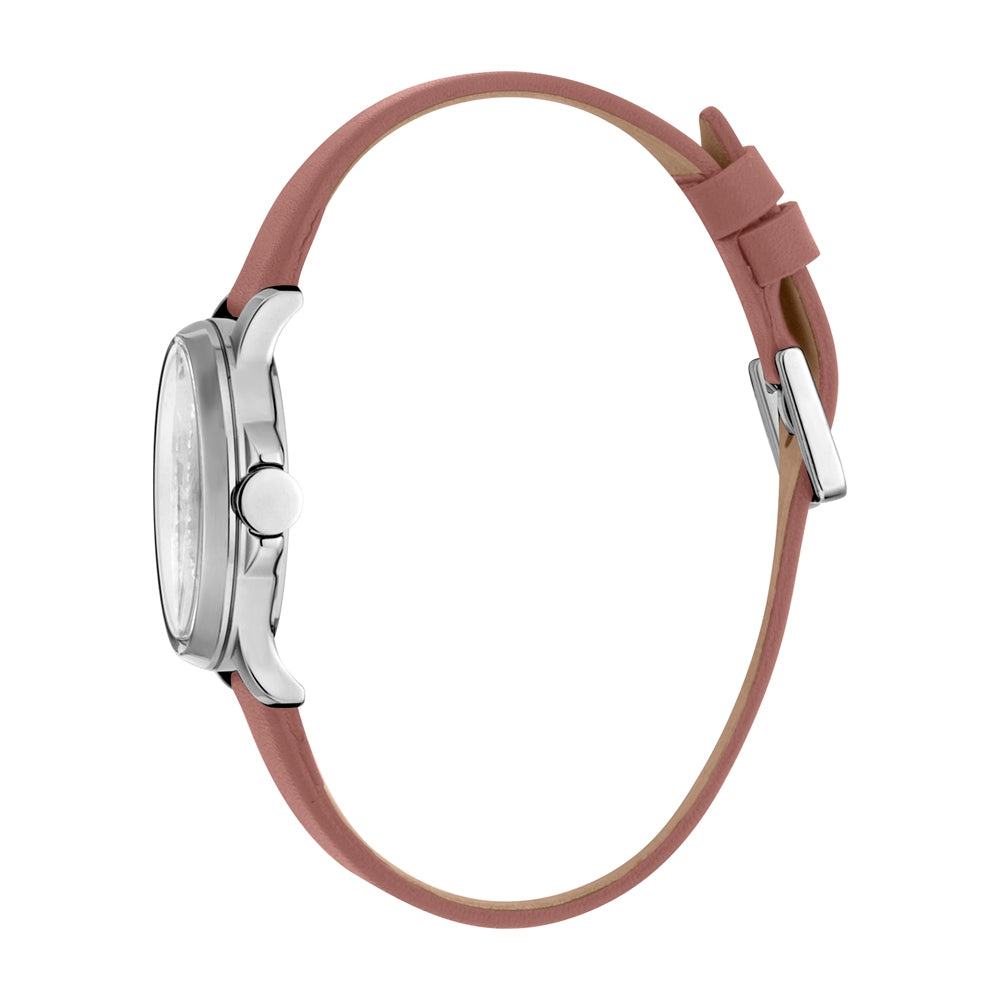 Esprit watch ladies old rose leather strap with silver case and stone inside the dial