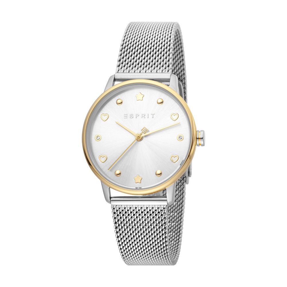 Esprit watch ladies silver mesh bracelet gold silver case white dial set with accessories