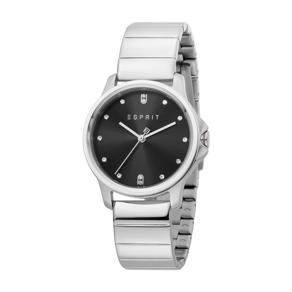 Esprit watch ladies silver stainless steel bracelet black dial with stone