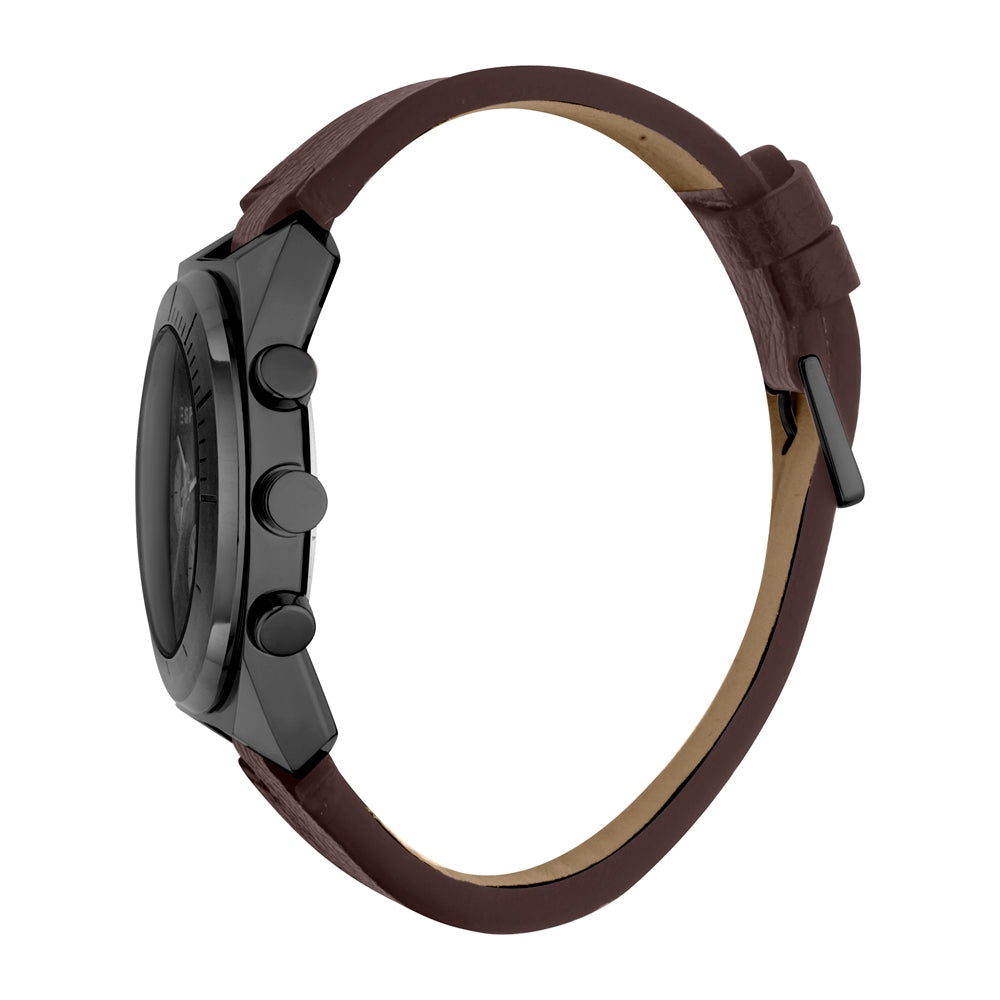 Esprit Men's Chronograph Watch Brown Leather Strap Black Dial With Date
