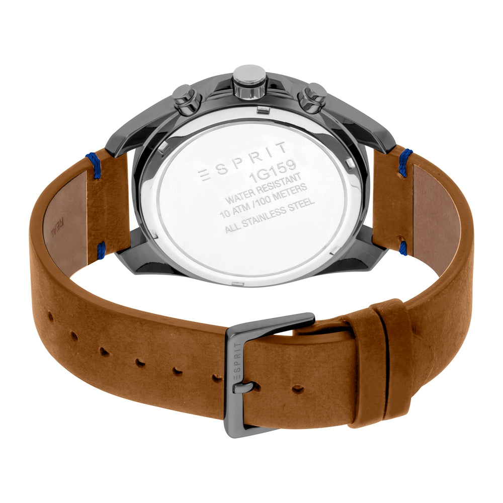 Esprit Men's Watch Brown Leather Strap Gun Metal Case & Blue Dial With Date