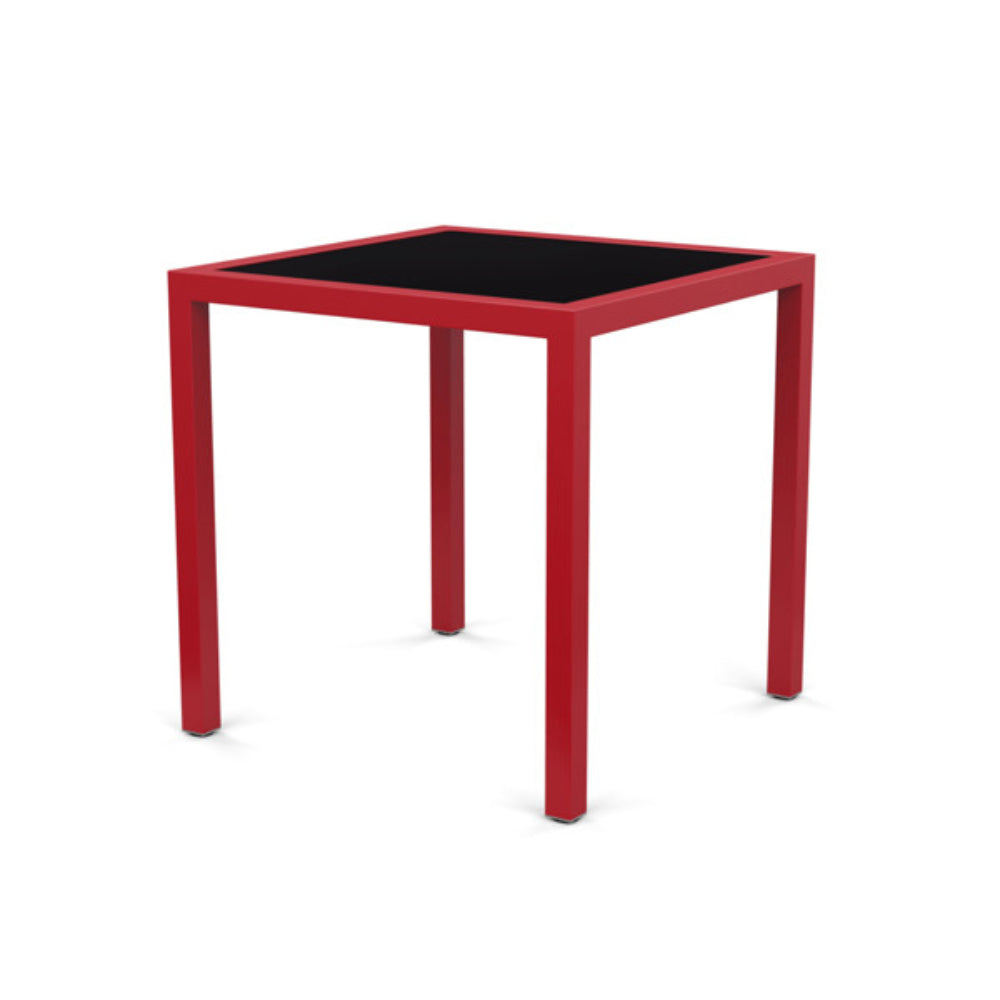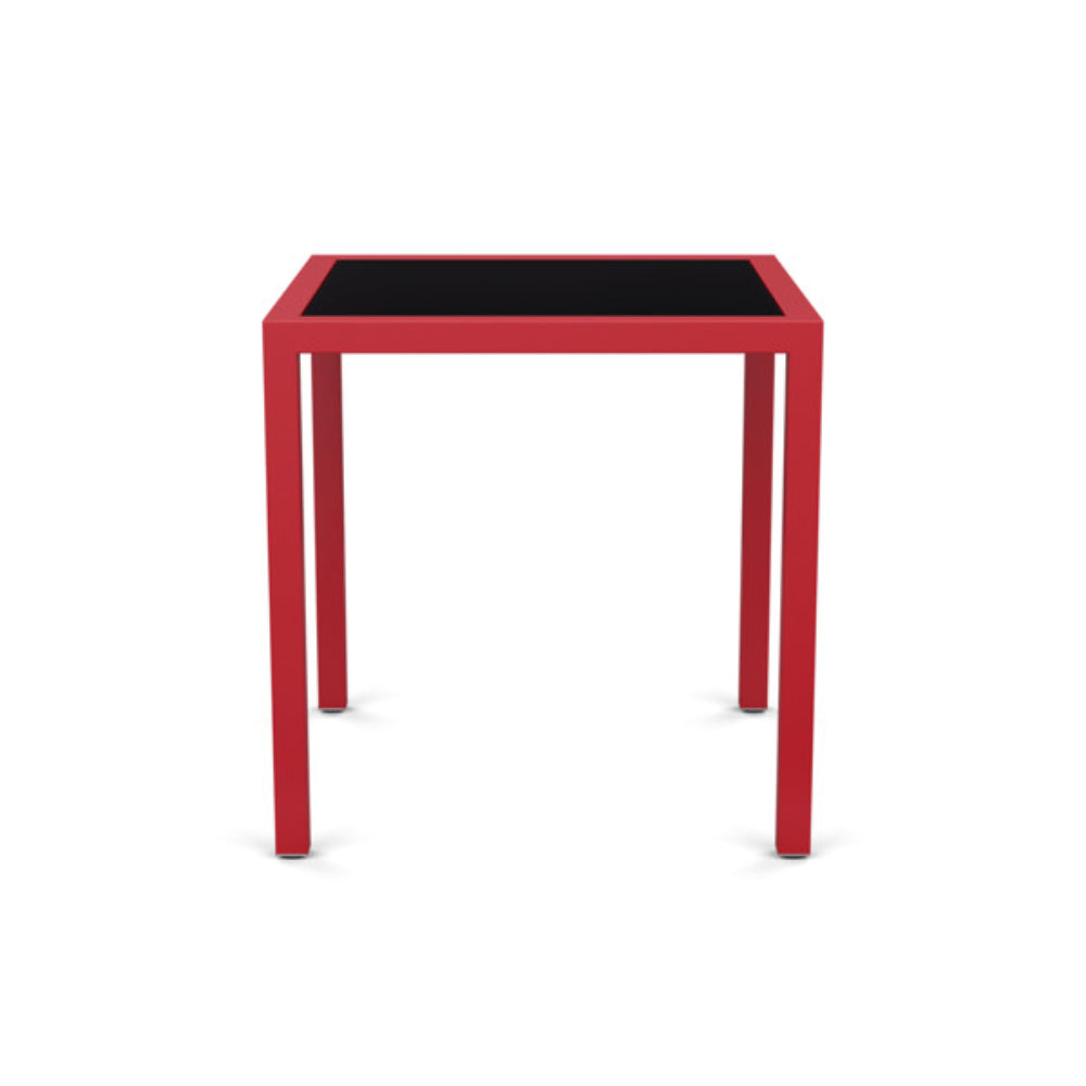 Made of powder-coated metal with a black inset wood top. Crafted from steel and engineered wood top. So versatile, it can be used as an end table or play table