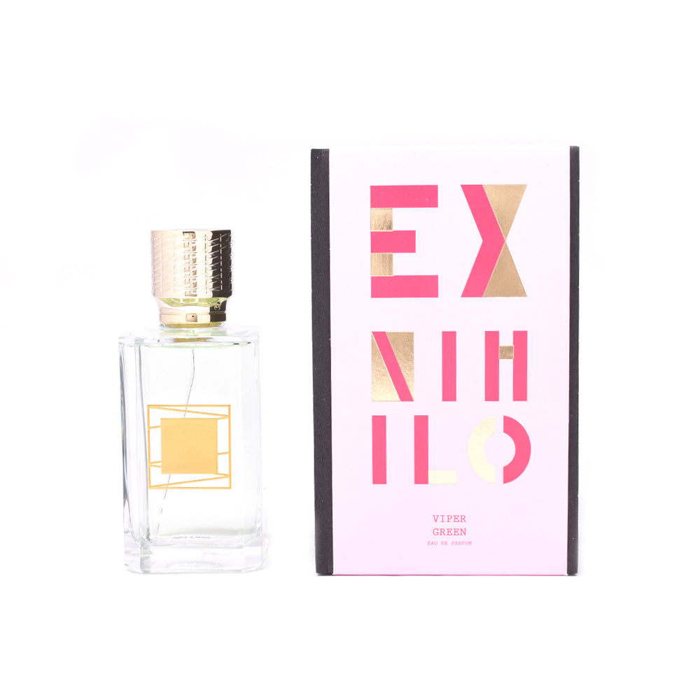 EX NIHILO Viper Green EDP - 100ml is a luxurious and indulgent fragrance that captures the essence of a seductive and alluring green floral. It is inspired by a vegetal poison, evoking both fascination and danger. This scent is an invitation to an addictive and thrilling journey. The perfume opens with a burst of freshness from Green Mandarin, Angelica Root, and Galbanum, creating a vibrant and sparkling sensation on the skin. As it settles, the heart of the fragrance reveals the elegant and alluring notes of Sambac Jasmine absolute and Iris absolute, adding a touch of sensuality. The base notes of Vetiver and Patchouli ignite a fiery and irresistible attraction, enveloping the wearer in a sultry and captivating aura. The composition of EX NIHILO Viper Green EDP - 100ml is a perfect balance of contrasting but complementary elements, creating an addictive and intoxicating scent. With its unique blend of fresh and floral, woody and powdery accords, this fragrance is a true masterpiece, exuding sophistication and allure. This decadent perfume is a must-have for those who enjoy indulging in luxurious, captivating, and daring aromas. SPECIFICATIONS
