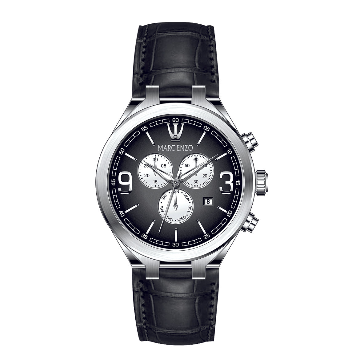 Marc Enzo Gents Chronograph Black Dial Black Leather Quartz Watch