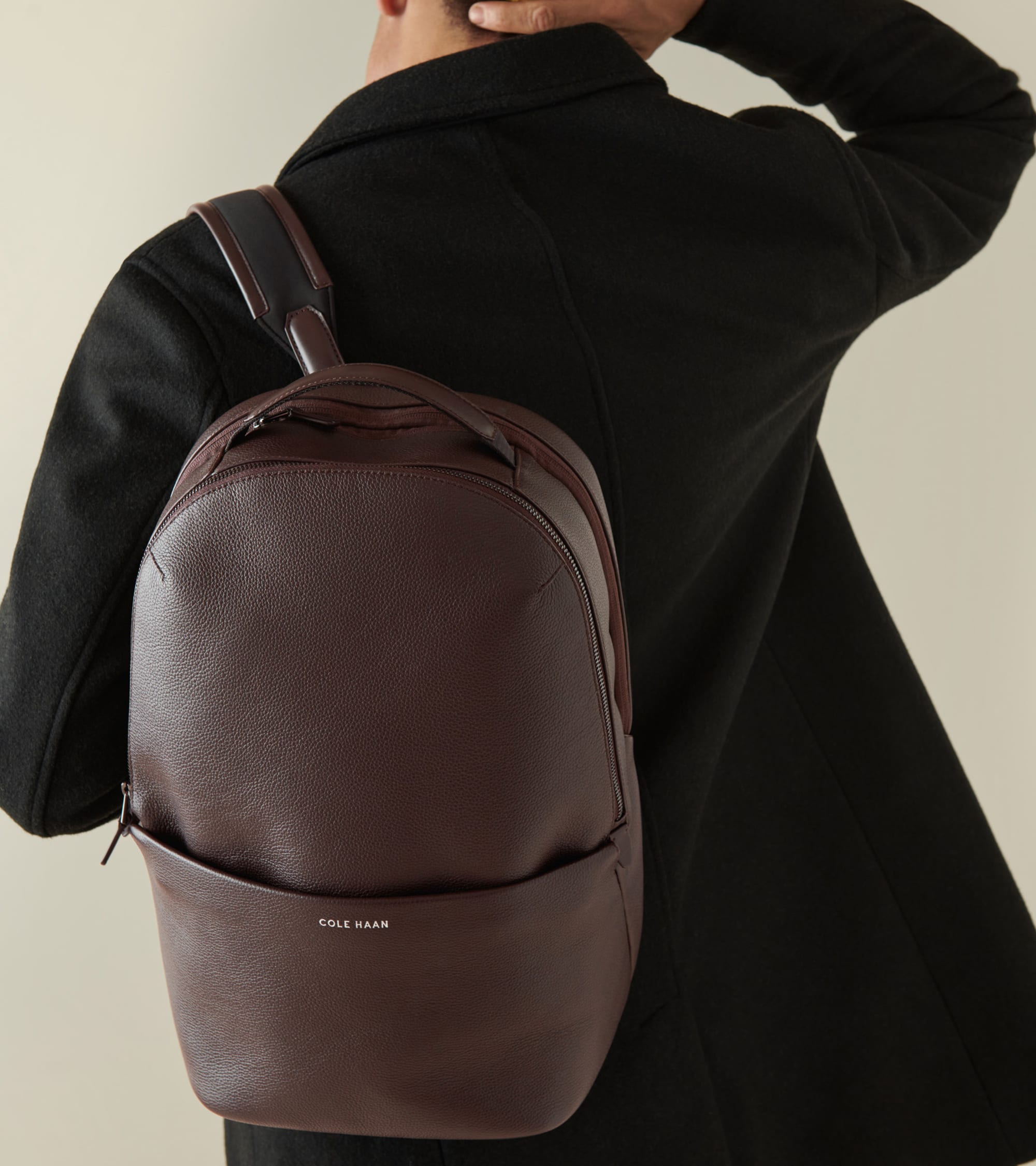 - Zip top backpack crafted in luxe yet durable pebbled leather.