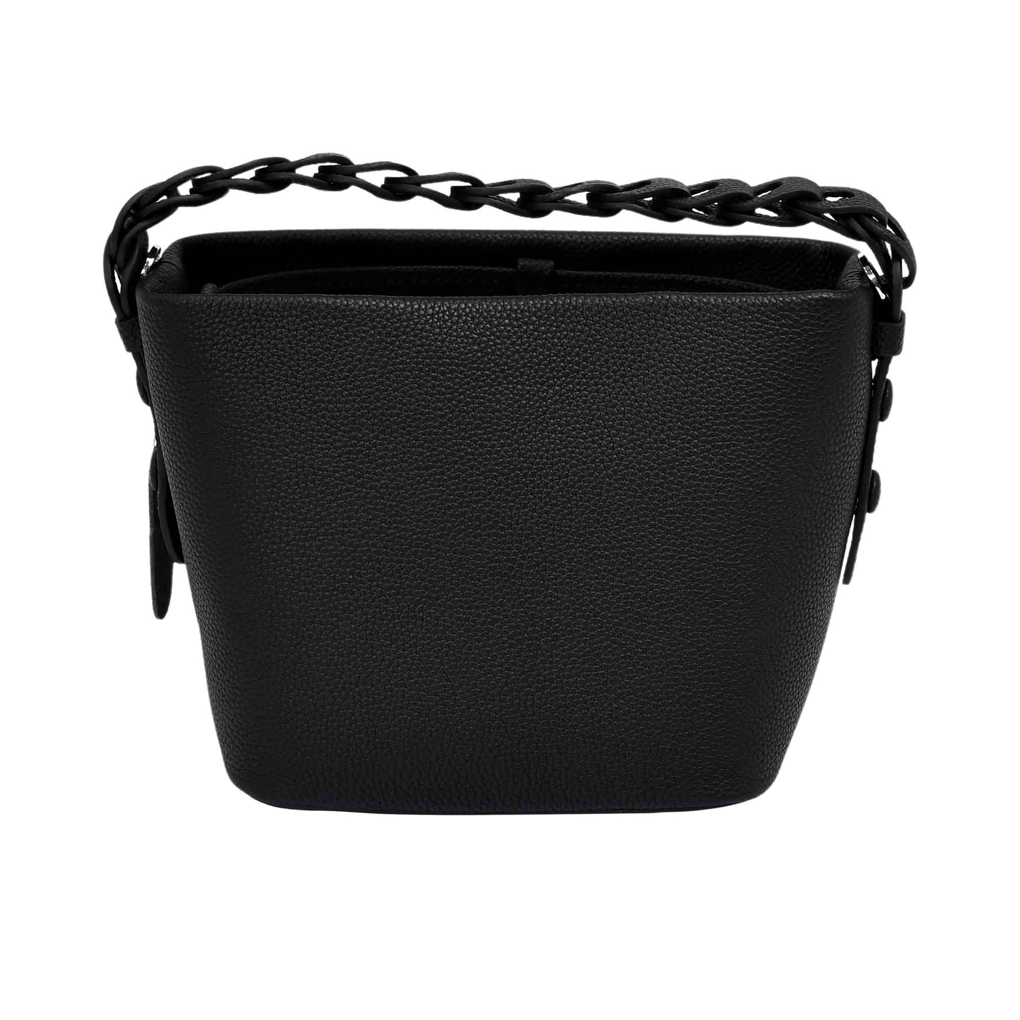 Structured Bucket Silhouette: Designed with a cylindrical, flat-base body that maintains its elegant architectural shape even when empty, allowing the bag to stand independently.