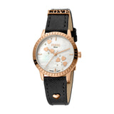 Ferre Milano Ladies Watch Mother Of Pearl Heart Design On The Dial With Black Leather Strap