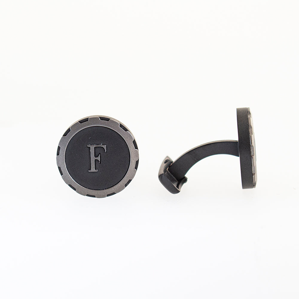 Ferre Milano Cufflinks Black Matt Finish With Gray Lining On The Face