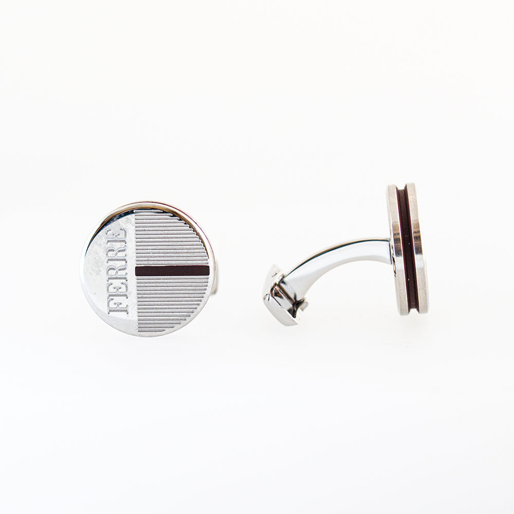 Ferre Milano Cufflinks Stainless Steel With Black Lining