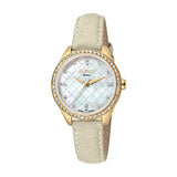 Ferre Milano Ladies Watch Mother Of Pearl Dial With Beige Leather Strap