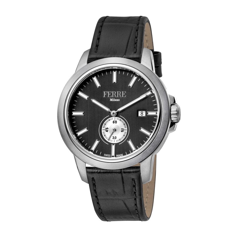 Ferre milano stainless steel case black dial and black leather strap mens watch