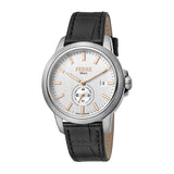 Ferre Milano Men's Stainless Steel Watch With White Dial & Black Leather Strap