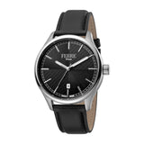 Ferre Milano Men'S Watch Black Leather Strap With Black Dial