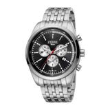 Ferre Milano Men's Watch Chronograph Full Stainless Steel Case & Bracelet / Black Dial & Steel Index & Hands with Date Indicator on the Dial / Steel Sub-Dial with Red Second Hand & Water Resistant 10ATM
