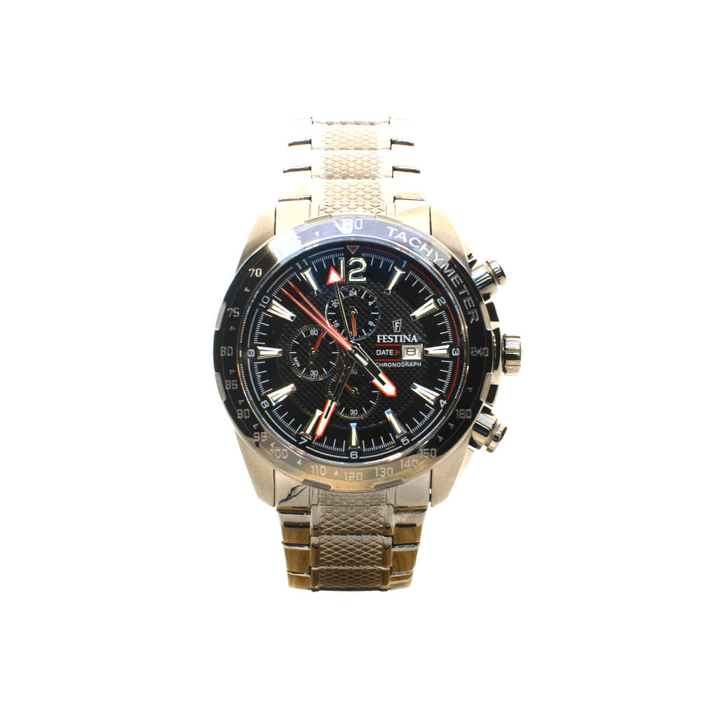 Festina mens black plated chronograph with stainless steel case & bracelet