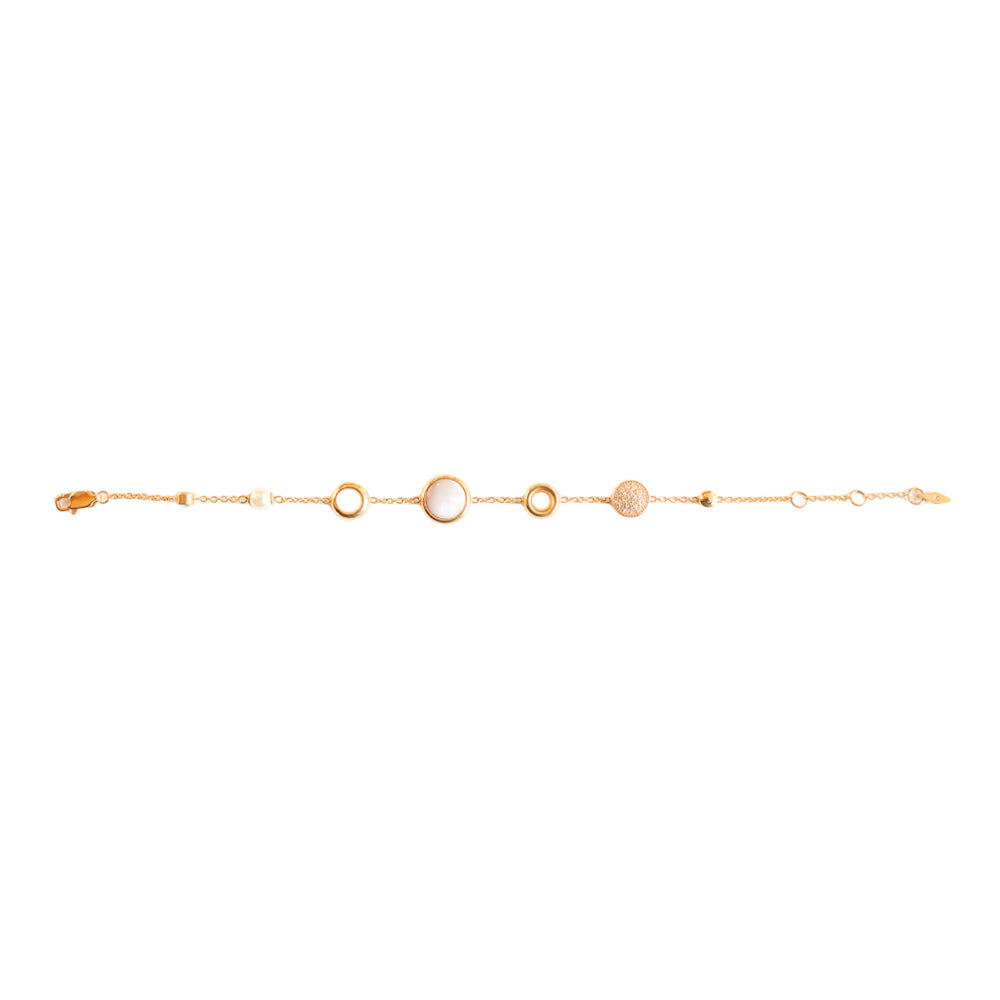 Fossil Ladies bracelet with round charms with mother of peartl and stones