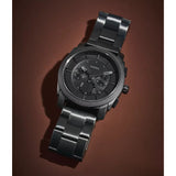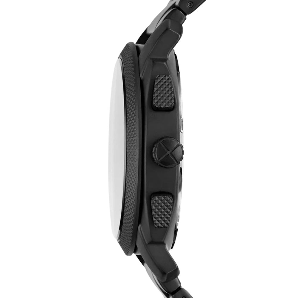 This 42mm Machine features a black satin textured dial, chronograph movement and black stainless steel bracelet.