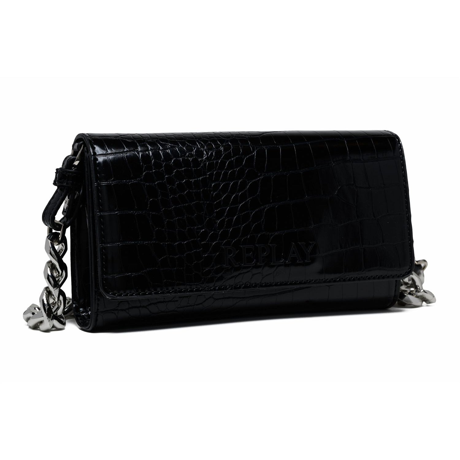 The Replay Women's Leather Black Bag is a stylish and functional handbag that is perfect for everyday use. Made from high-quality leather, this bag features a sleek design and is finished with polished silver metal fittings, giving it a touch of elegance. The bag closes with a convenient magnetic clasp, making it easy to access your belongings. It also comes with a removable shoulder strap, allowing you to wear it as a shoulder bag or carry it as a handheld bag. The length of the strap is approximately 90 cm, providing comfortable and versatile wear. Inside, the bag has a plain coloured lining made from polyester. The main compartment is spacious and can hold all your essentials, while the card slot and credit card compartment keep your cards organized. There is also a zip pocket for securing important items and a slip pocket for quick access to small items. The Replay Women's Leather Black Bag is a practical and fashionable accessory for any woman. Its sleek design, magnetic clasp, and multiple compartments make it a perfect choice for everyday use and for adding a touch of style to any outfit. SPECIFICATIONS