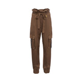 | The Gaelle Women's Marrone Biscotto Trouser is a stylish and comfortable addition to any wardrobe. The waistband is elasticated and has loops, comes with a matching belt, for a secure and adjustable fit. The fabric is lightweight and breathable to keep you cool on hot days. The logo on the one leg and side pockets adds a stylish edge to the Trouser and the elasticated ankle cuffs ensure a secure fit. These Trouser are perfect for any leisurely outdoor activities such as taking a stroll around the park, or for a workout session at the gym. The body fitted design ensures a flattering look and provides added comfort and mobility. The fabric is also perfect for machine washing and drying, making it an easy care piece. This pant is the perfect choice for all fashion-forward women who desire a stylish yet comfortable pant for any occasion. SPECIFICATIONS