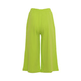 The Gaelle Women's Verde Mela Pant is a stylish and comfortable addition to any wardrobe. It features an elasticated waistband with a drawstring for optimal fit and comfort. The wide leg silhouette is perfect for achieving a modern, casual look. The design also features a logo at one leg in black for an added touch of style. The fabric is light weight and quick drying for a comfortable feel all day long. Whether you’re getting dressed for work or just hanging out at home, you’ll be sure to feel comfortable and stylish in these pants. From date night to a weekend at the beach, these pants are the perfect choice for any occasion. SPECIFICATIONS