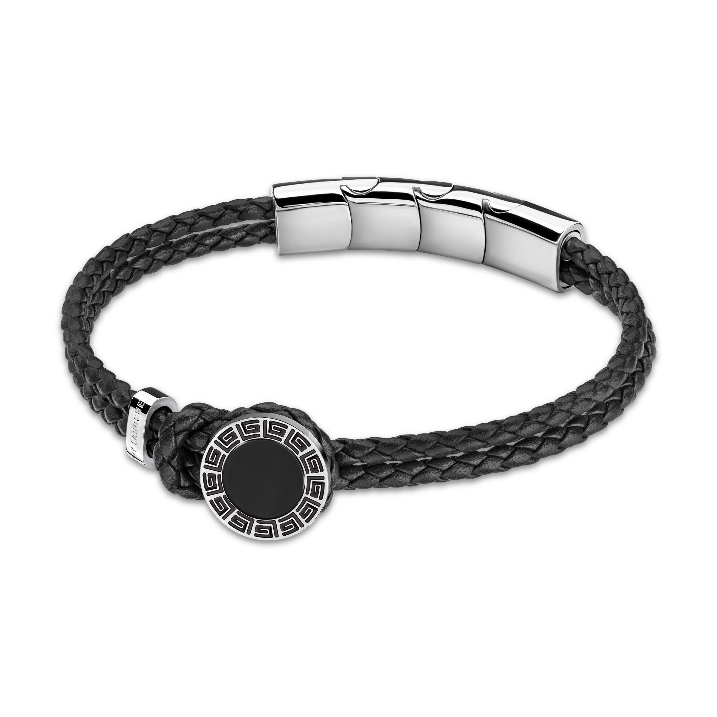 Guy Laroche Marc Gents Stainless-Steel Bracelet With Onyx Black Leather