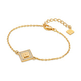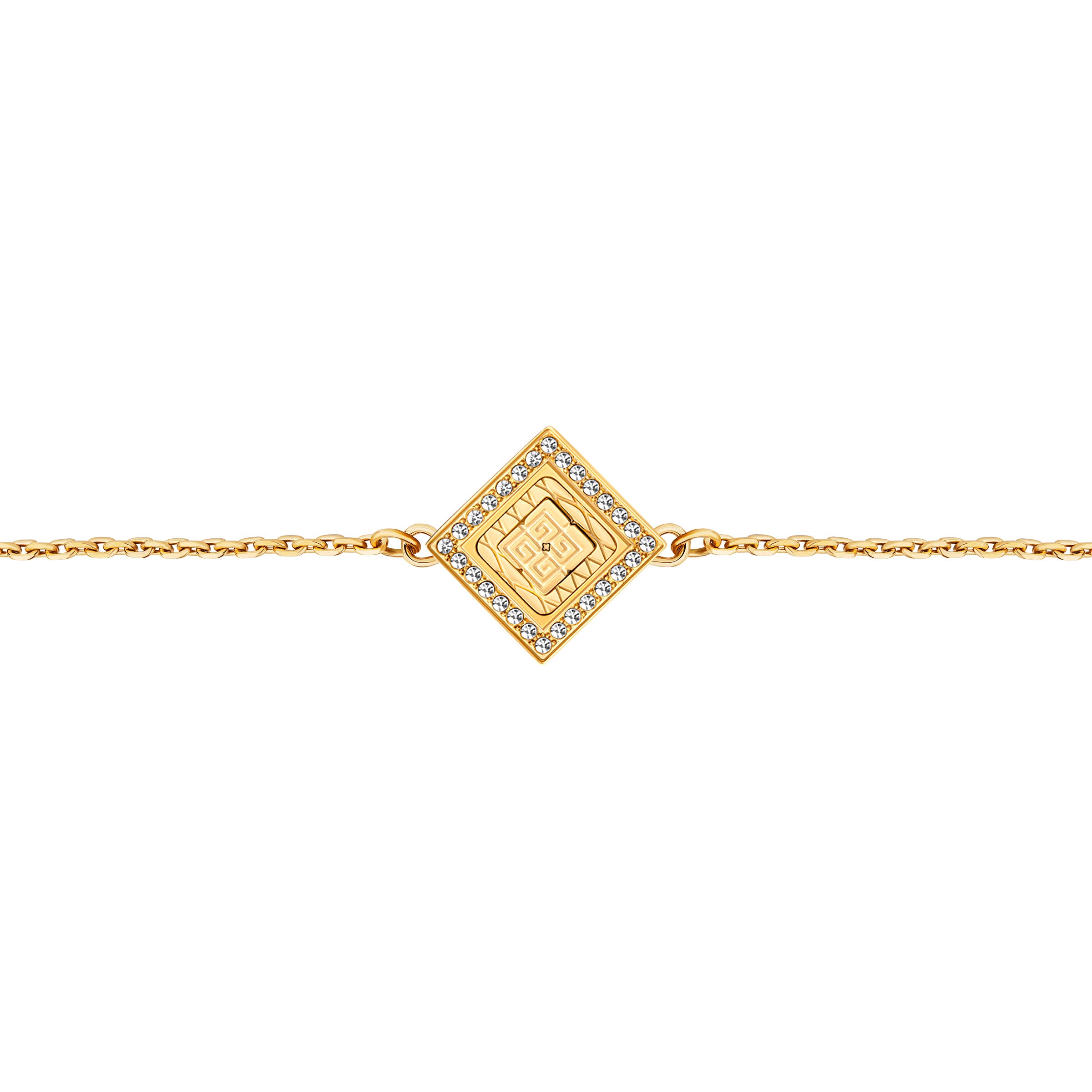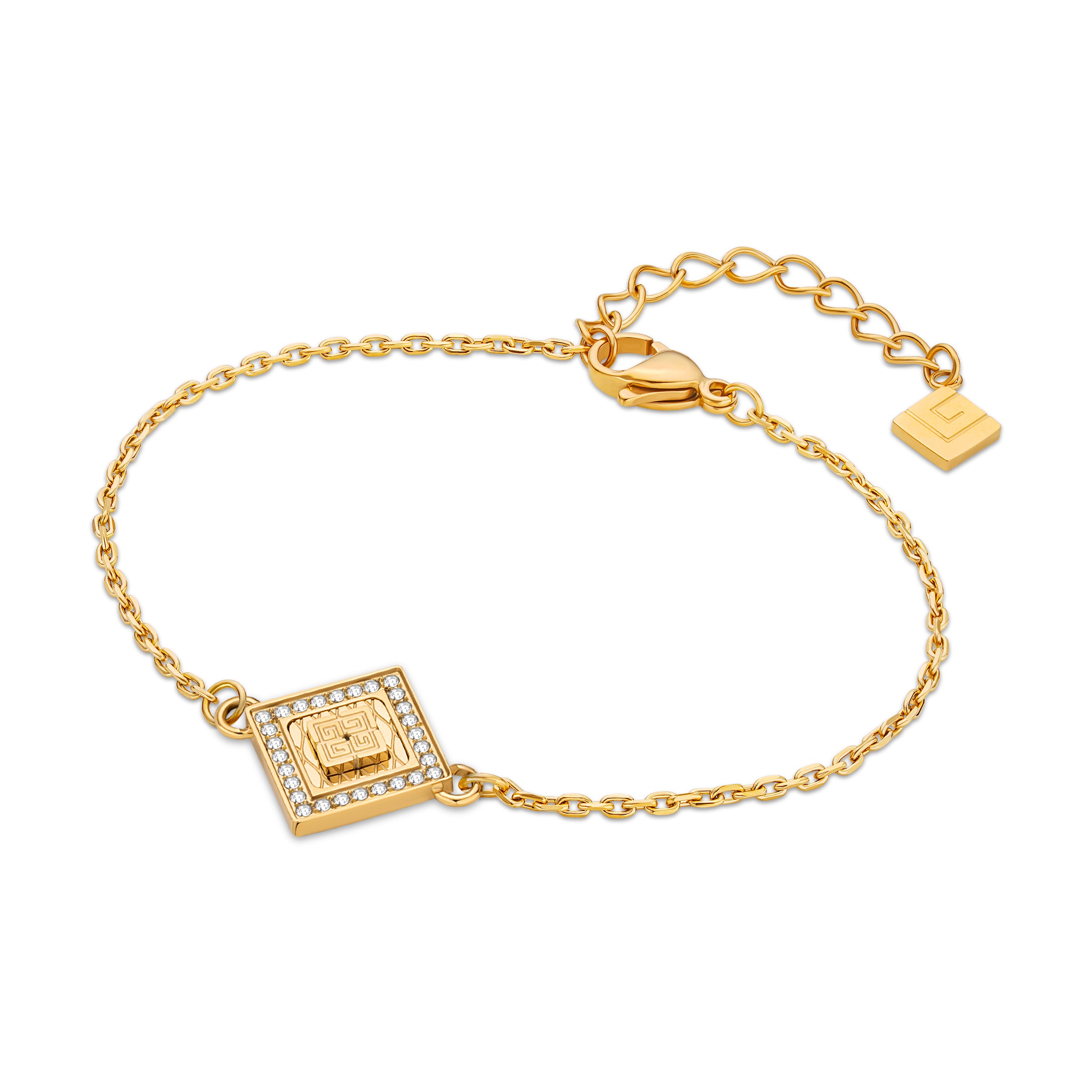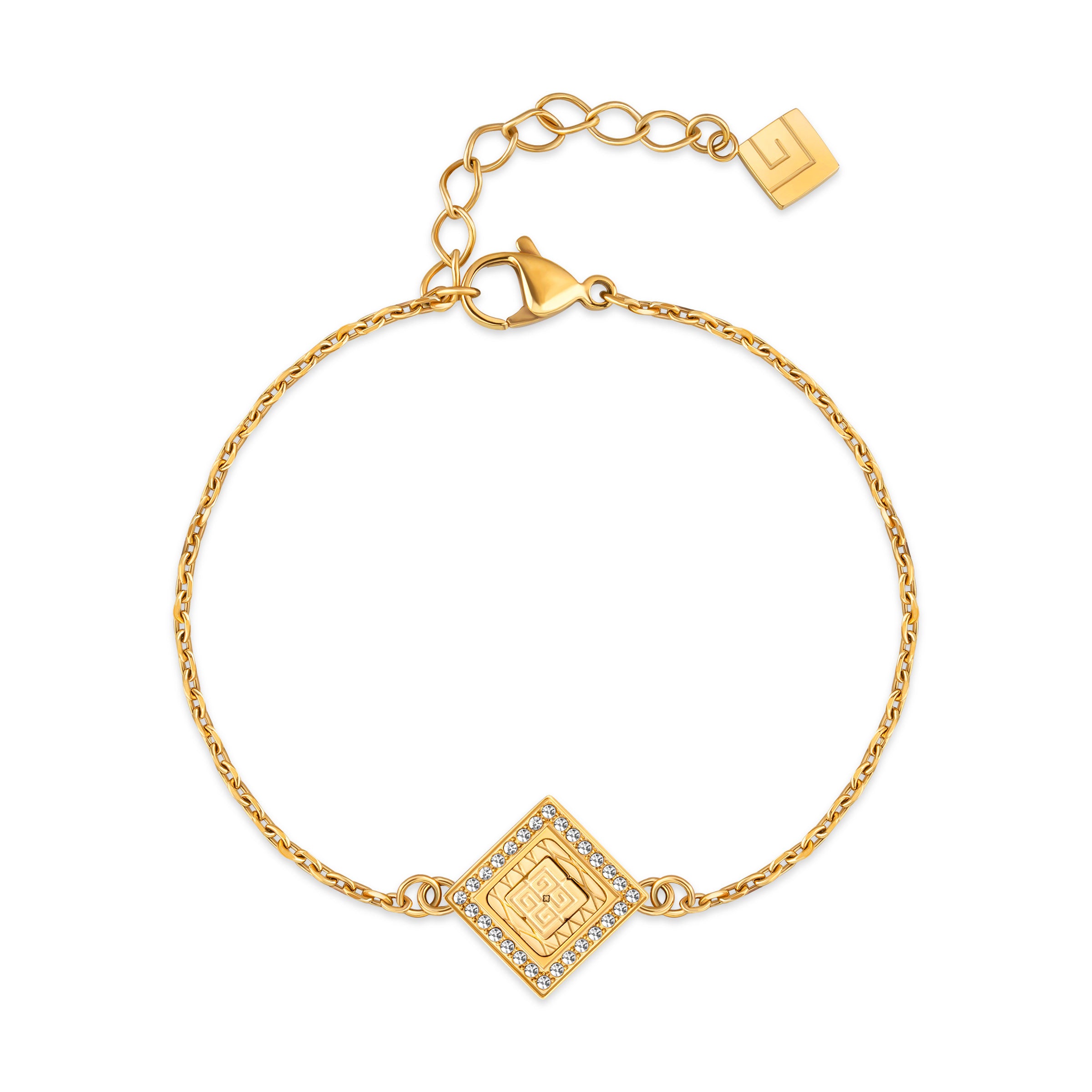| Full of personality, Eva bracelet takes the spotlight with the sparkling crystals and meticulous details. Capturing the energetic essence of the season and exuding feminine grace, the stunning diamond-shaped charm effortlessly commands attention. Adorned with the distinctive 'GL' signature, it stands as a testament to the brand's unparallaled elegance and luxury. The contours of the charm come alive thanks to strategically placed crystals, all coming together to complement the allure of the gold-plated bracelet. |