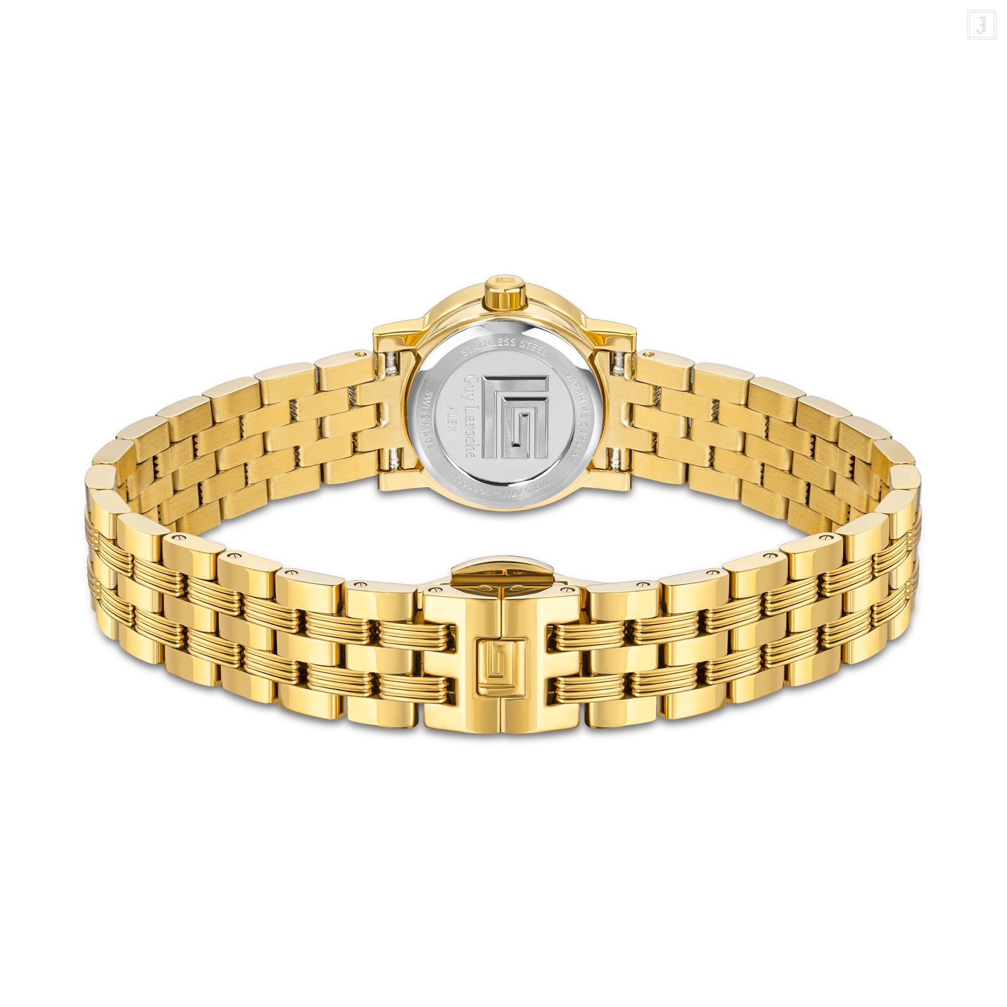 | The timeless and elegant aesthetics of Guy Laroche's latest Alex timepiece is embedded with the fine craftsmanship. Conveying femininty in a contemporary style, Alex features a white mother of pearl dial encased in a curved sapphire glass. Finished with a ion-plated gold bracelet with the iconic 'GL' etched bezel, Alex perfectly balances functionality and style. |