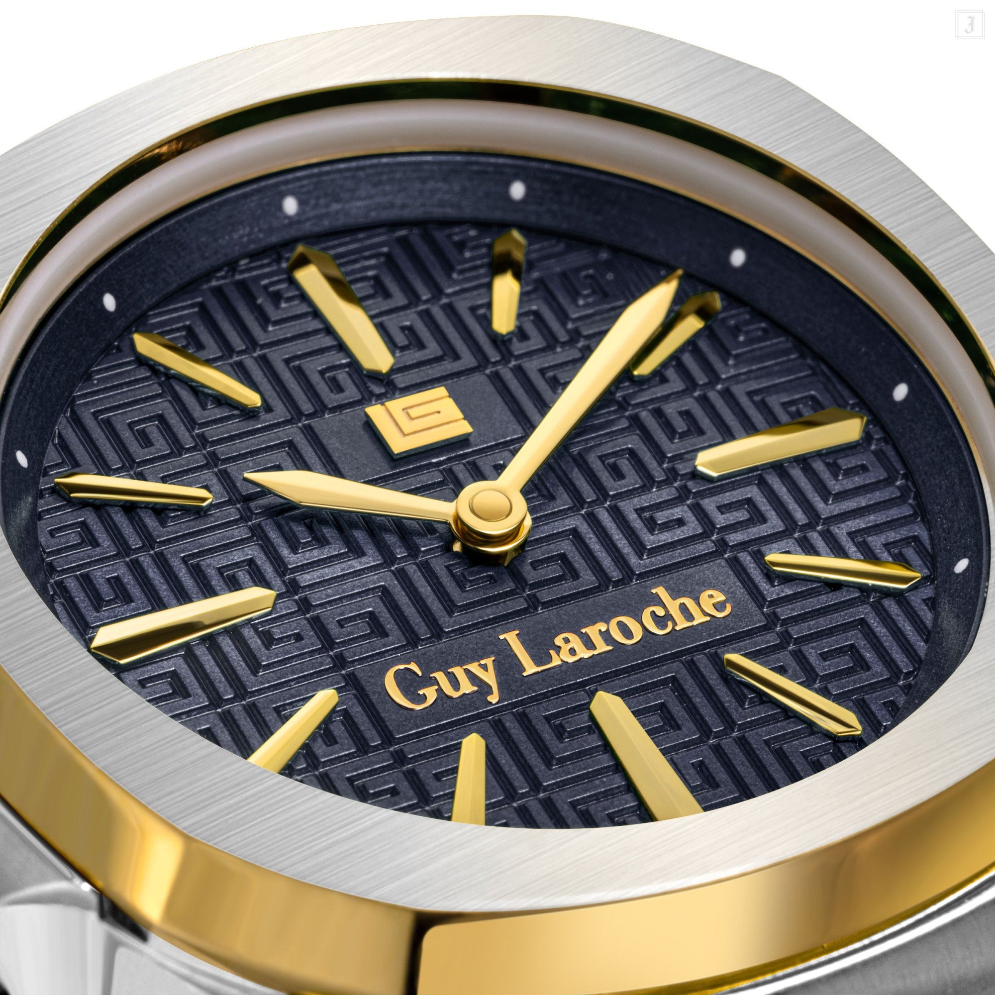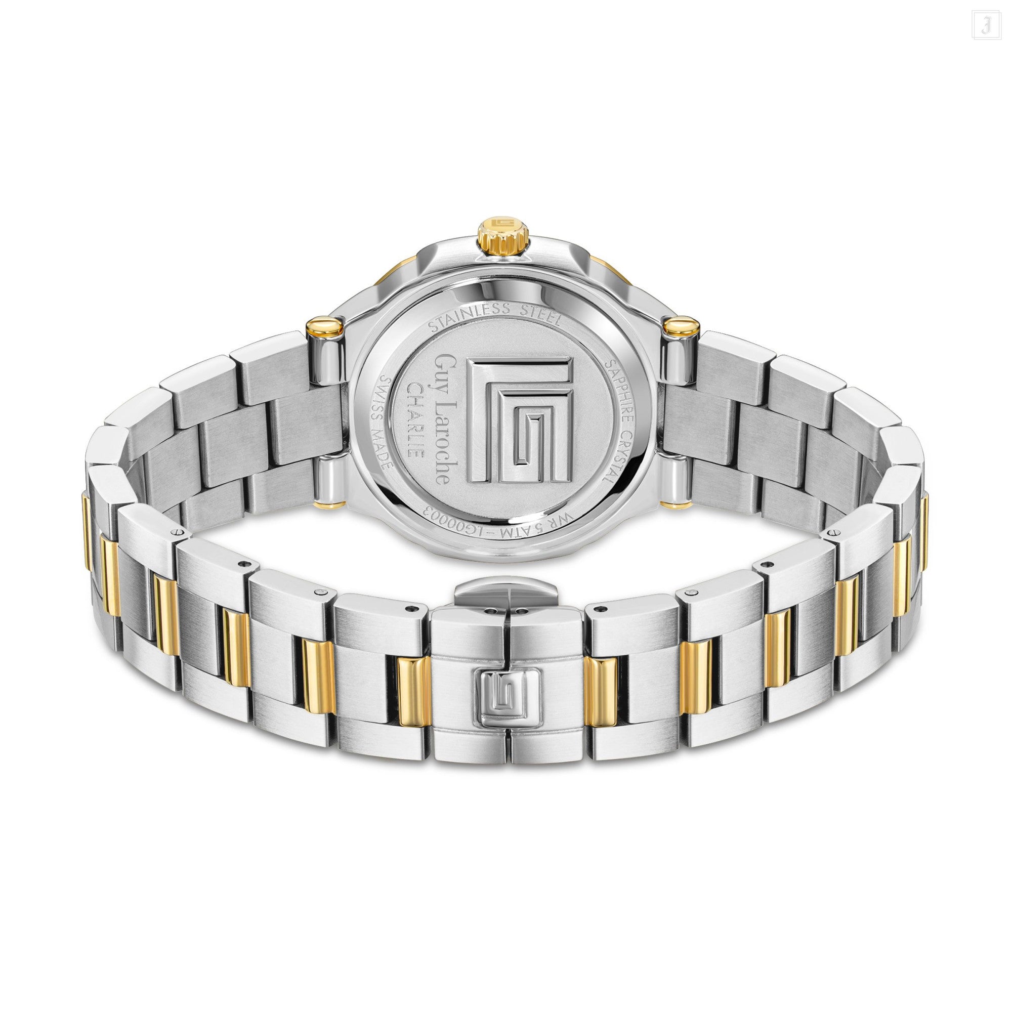| Blending luxury with sophistication, Guy Laroche's Charlie makes a true style statement. Refreshed with the 'GL' monogrammed blue dial and finished with the dual toned gold-plated bracelet, the timepiece is packed with personality. |