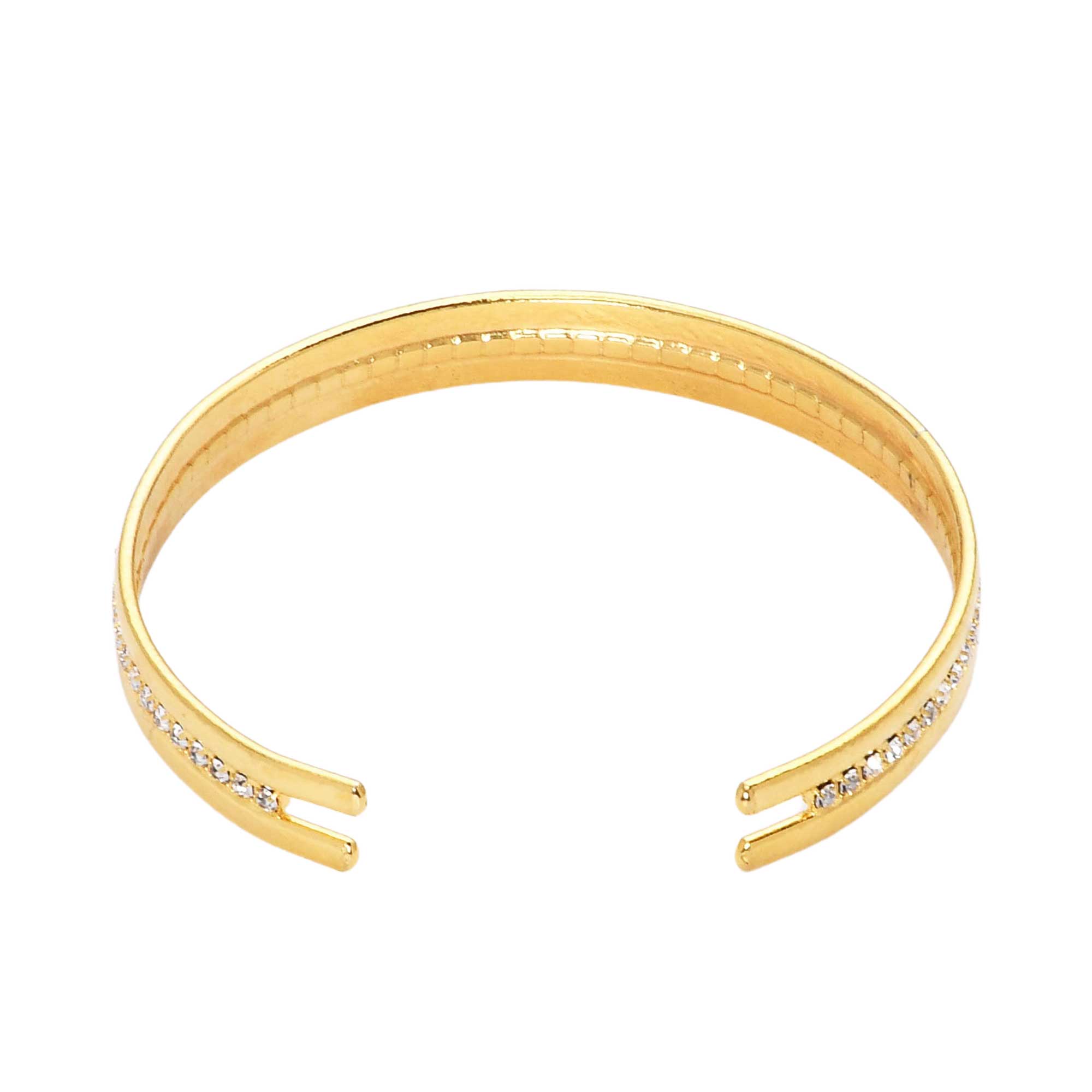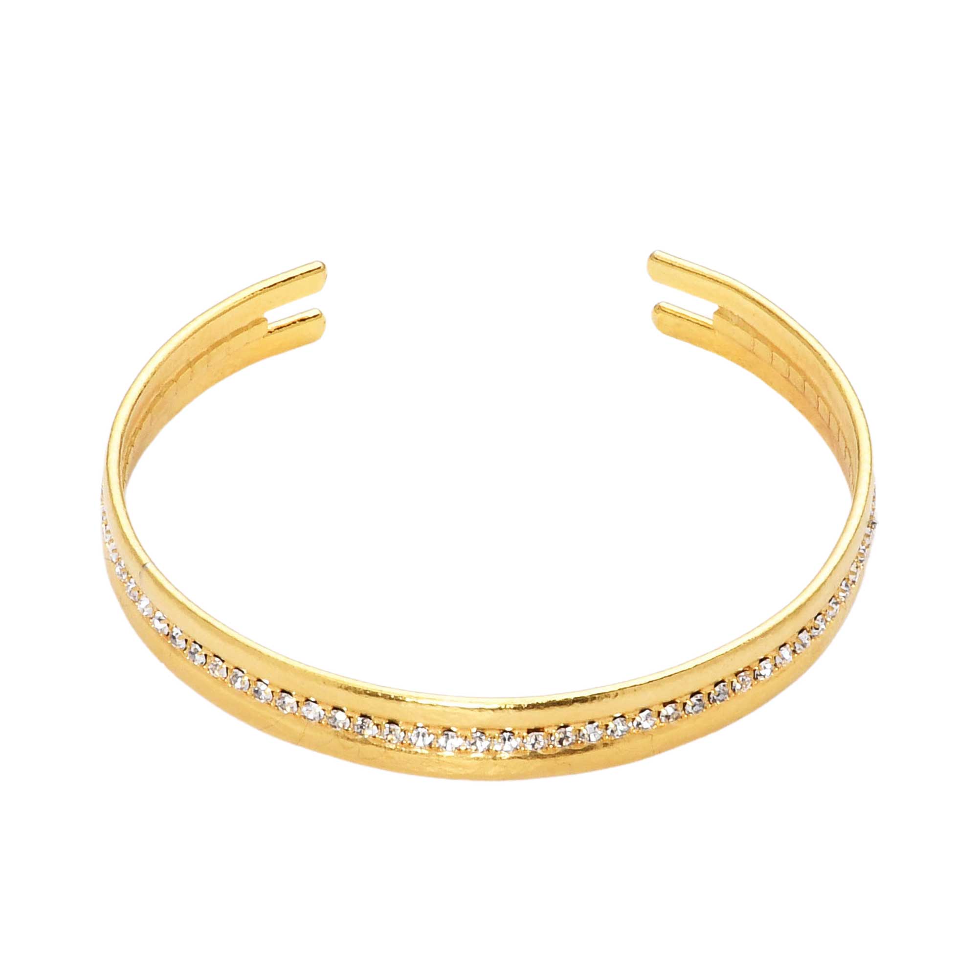 Add a timeless sparkle to your collection with the MICHELLA Elegant Gold Crystal Bangle. Designed with sophistication and minimalism in mind, this gold-tone open bangle features a single refined row of dazzling crystals, creating a luxurious shine that enhances any outfit.
