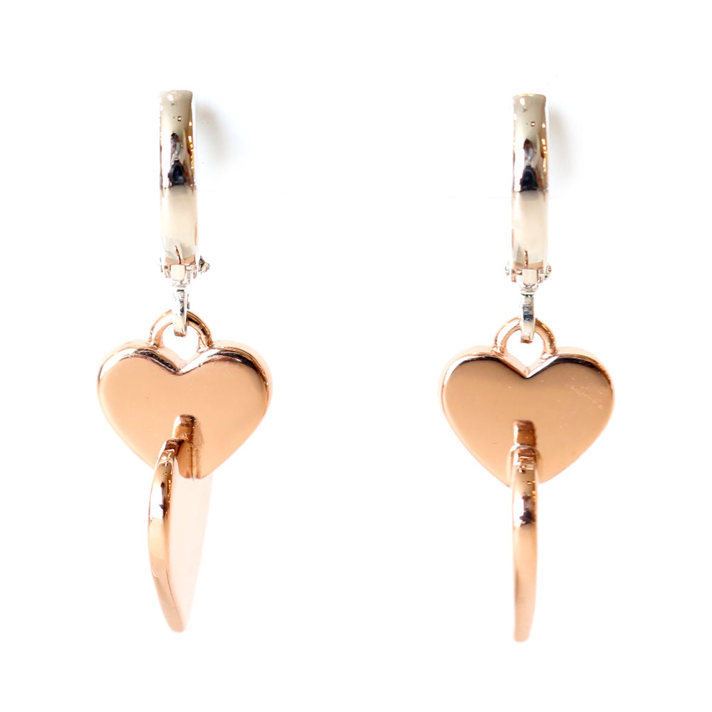 Guess Earrings Silver Color & Ip Rosegold Crystal Pendant With Twisted Heart Design