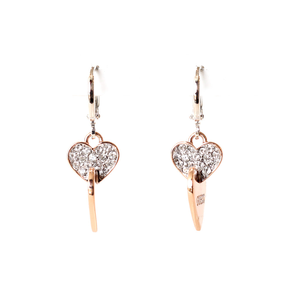 Guess Fashion Accessories Earrings silver and rosegold crystal pendant with twisted heart design