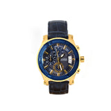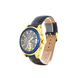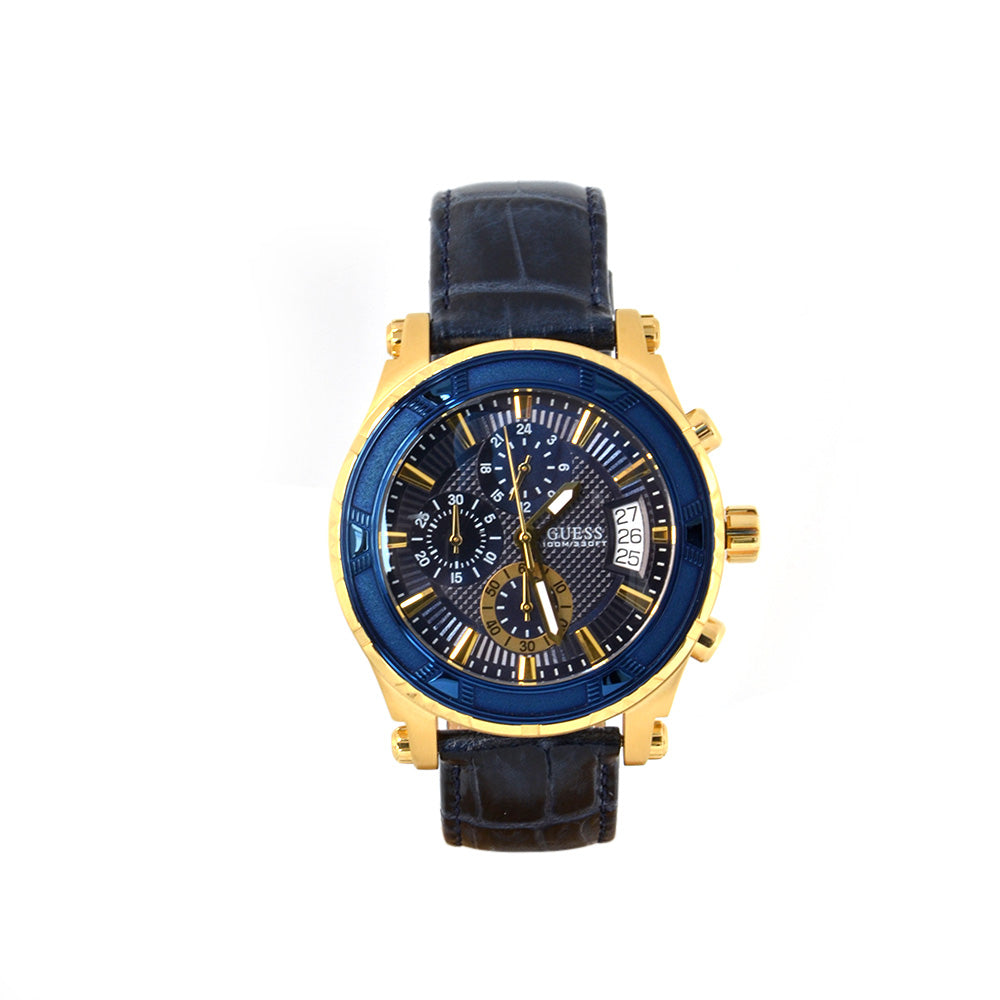 Guess Watch Men's Chronograph Gold Case/ Sun Blue Dial with Blue Bezel & IP Blue Leather Strap