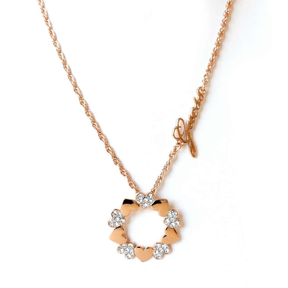 Guess Necklace Rosegold with Stone Heart & Circle Pendant