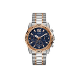 Guess Men's Tachymeter Watch Two Tone Rose Gold/Silver Plated Case & Bracelet With Sun Blue Dial