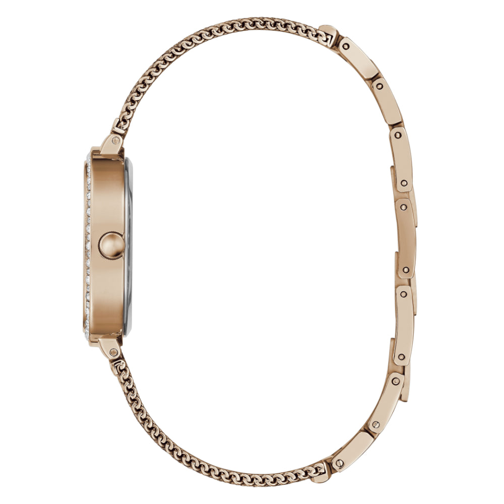 Guess Ladies Trend Stainless Steel Analog Watch Rose Gold Textured Dial Rose Gold Tone Polished Square Case Stainless Steel/Mesh Bracelet With G-Link