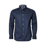 The Eden Park Men's Dark Blue Shirt is a high-quality shirt with a regular fit and a classic button-down collar. It is made from a fine weave of 100% cotton, which gives it a soft and smooth texture. The shirt features a unique XV embroidery in tie fabric on the back, along with three tricolor rooster patches, adding a touch of sophistication to the design. Additionally, there is a small XV embroidery and a silicone rooster patch on the right sleeve, further adding to the shirt's elegant look. The shirt also features the brand's signature oval buttons and a tie fabric inside the collar, making it stand out from traditional button-down shirts. The Eden Park logo is prominently displayed on the chest in an oval shape, adding a subtle branding element. The shirt has a rounded base, giving it a modern and stylish look. The dark blue color of the shirt is versatile and can be easily paired with different outfits. The Eden Park Men's Dark Blue Shirt is a must-have for any man's wardrobe, offering a perfect blend of style, quality, and comfort. Its attention to detail and unique design elements make it a standout piece that will elevate any outfit. SPECIFICATIONS