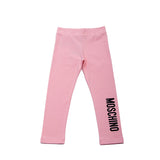 Girls cotton jersey leggings by luxury Italian brand Moschino Kid-Teen, with a white logo print on one leg.