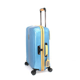 The Hartmann 7R Spinner Skyblue is a stylish and functional luggage option for travelers. It is lightweight, making it easy to maneuver and carry, while still being able to withstand the rigors of travel. The suitcase is made from a scratch and impact-resistant metalized Curv material, ensuring it stays in top condition even after multiple trips. One of the key features of the 7R Spinner is the exceptional resilient-dual tube aluminum pull handle with a leather grip. This allows for a comfortable and secure grip while pulling the suitcase. The premium leather carry handles provide an additional option for easy carrying. The smooth rolling double wheels with translucent polycarbonate core make navigation through busy airports and streets a breeze. The recessed TSA lock adds an extra layer of security to protect your belongings while traveling. The interior of the suitcase is designed to maximize space and organization. The spacious packing compartments provide ample space for all your items, and the mesh divided-zippered compartment keeps your belongings organized and secure. The zippered accessory pocket is perfect for storing smaller items, while the included shoe bag and laundry bag keep your clean and dirty items separated. The Hartmann 7R Spinner Skyblue is a durable and stylish luggage option with features that make traveling easy and organized. SPECIFICATIONS