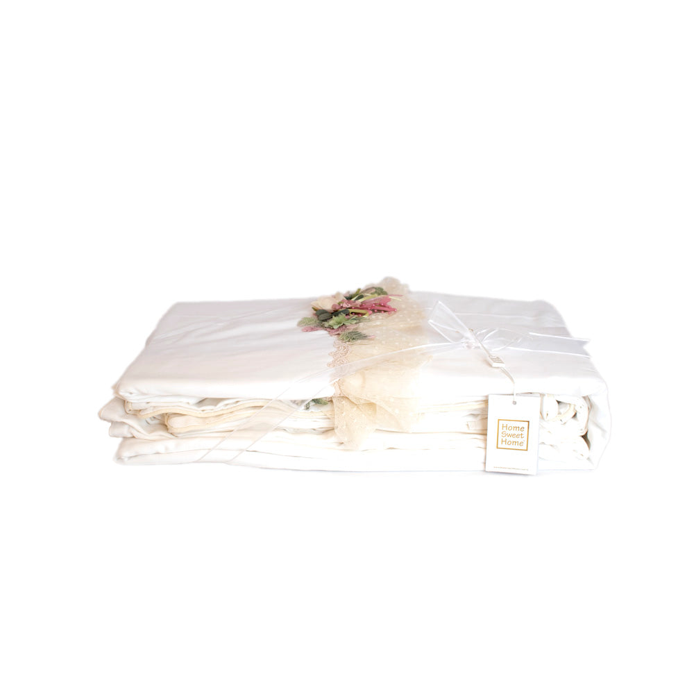 Sateen Cotton. 8 Pcs, 1 Duvet Cover 260X240.1 Flat Sheet 270X300, 2 Pillow Case 50X80 ,Bedspred 270X270,2 Pillow Sham 50X80,1 Cushion