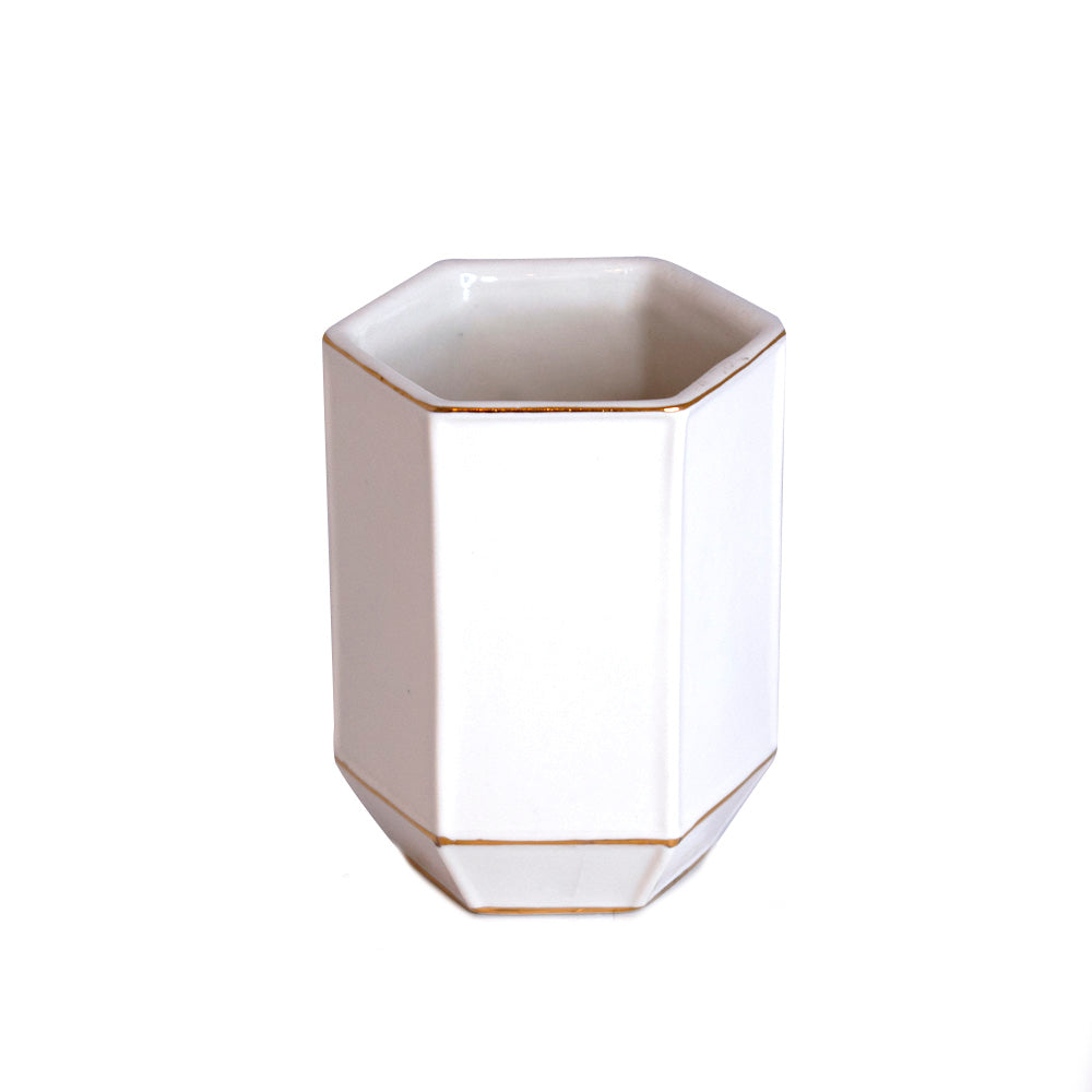 With its sophisticated hexagonal shapes and gold accented details, our St. Honore bath accessories are an exquisitely luxe addition to the bathroom. Tumbler: 3.27"L x 2.91"W x 4.17"H