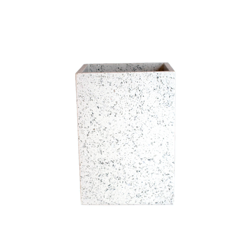 Add a modern touch to any bathroom with our Terrazzo bath accessories. Named for its use of Terrazzo, this collection features a unique melange of color. Waste Basket: 7"L x 7"W x 10"H