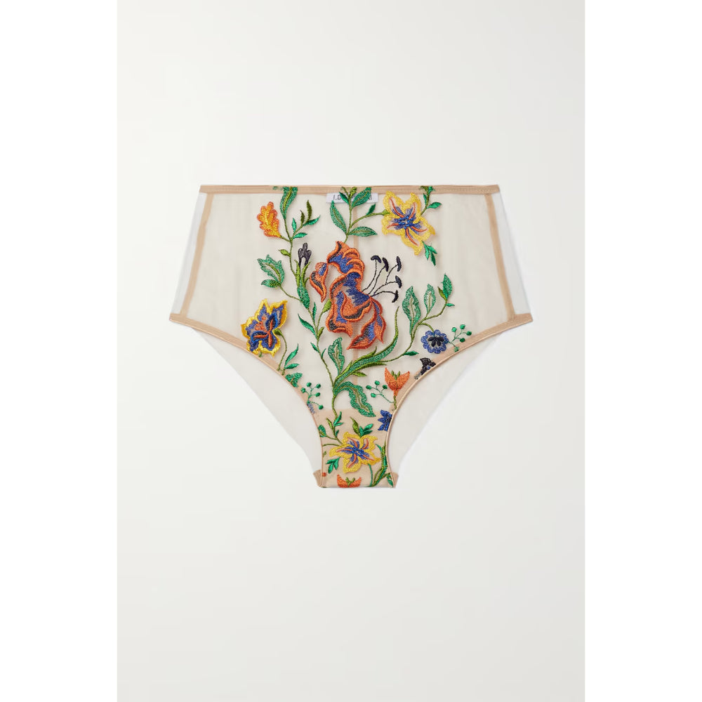 The I.D. Sarrieri Energy Flowers High Waist Briefs are the perfect touch of luxury to your lingerie wardrobe. This elegant piece is expertly designed by Romanian designer Iulia Dobrin. The briefs are constructed from a combination of soft tulle and delicate floral embroidery, with the embroidery extending from the gusset to the high-rise waist. This attention to detail makes the briefs feel stunningly luxurious with each wear. The briefs are lined at the base for extra comfort and are the perfect accompaniment to the matching bra. Enjoy the luxurious feel, comfort and style of the I.D. Sarrieri Energy Flowers High Waist Briefs. SPECIFICATIONS