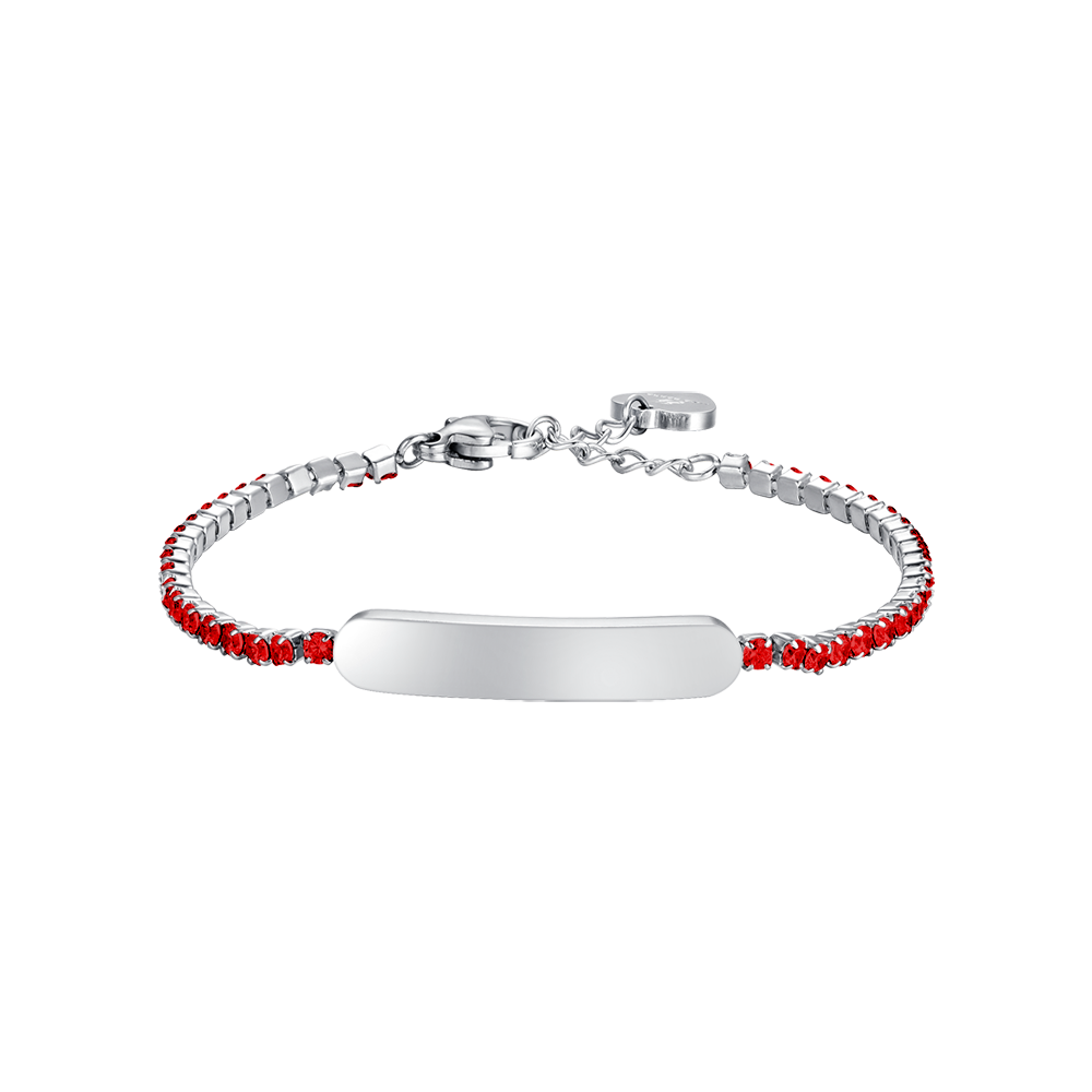 Luca Barra Girl's Tennis Bracelet In Steel with Red Crystals And Plate