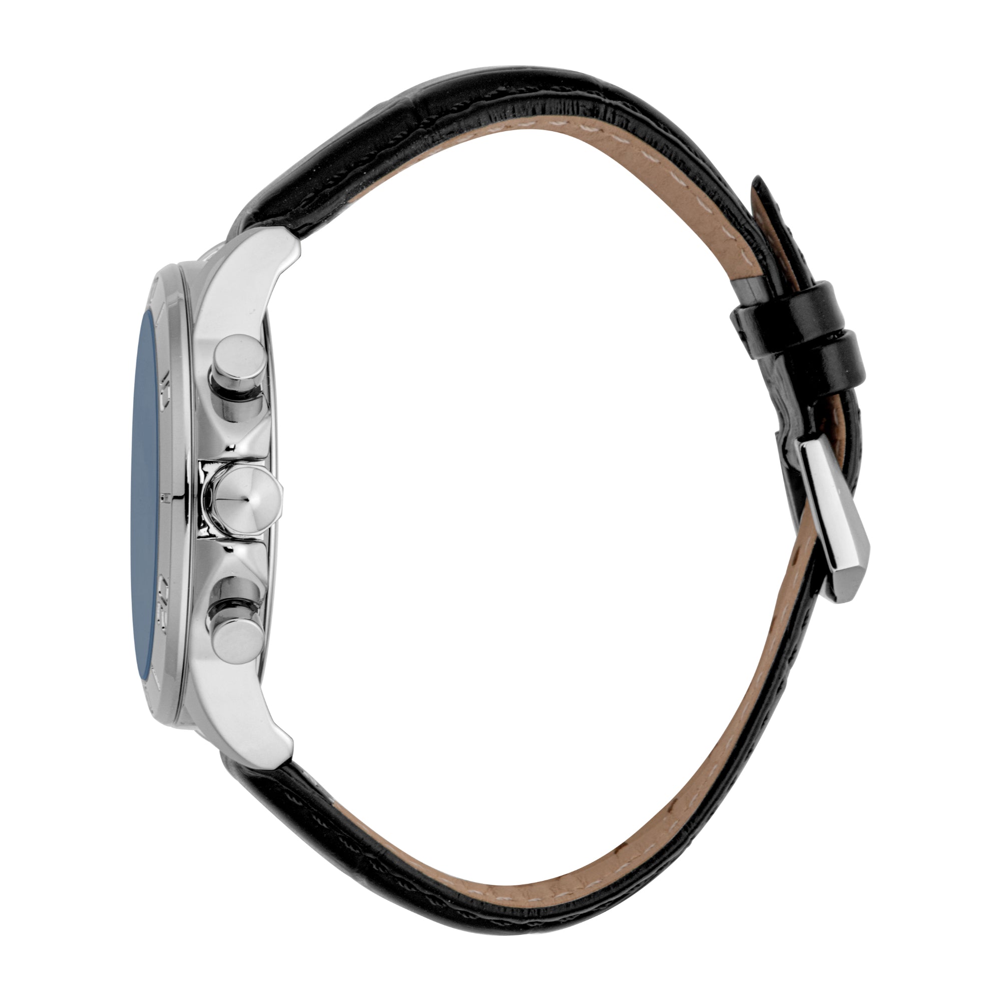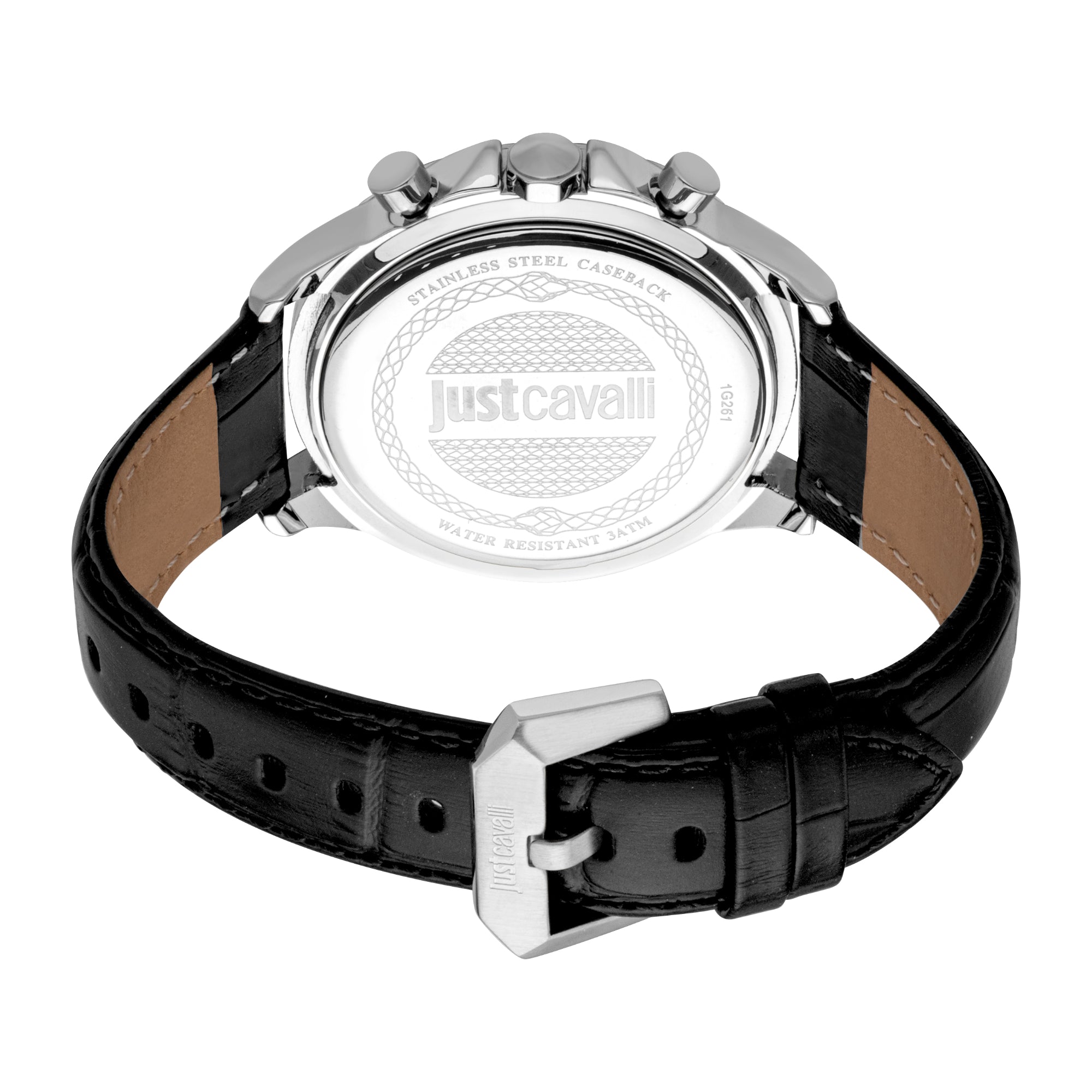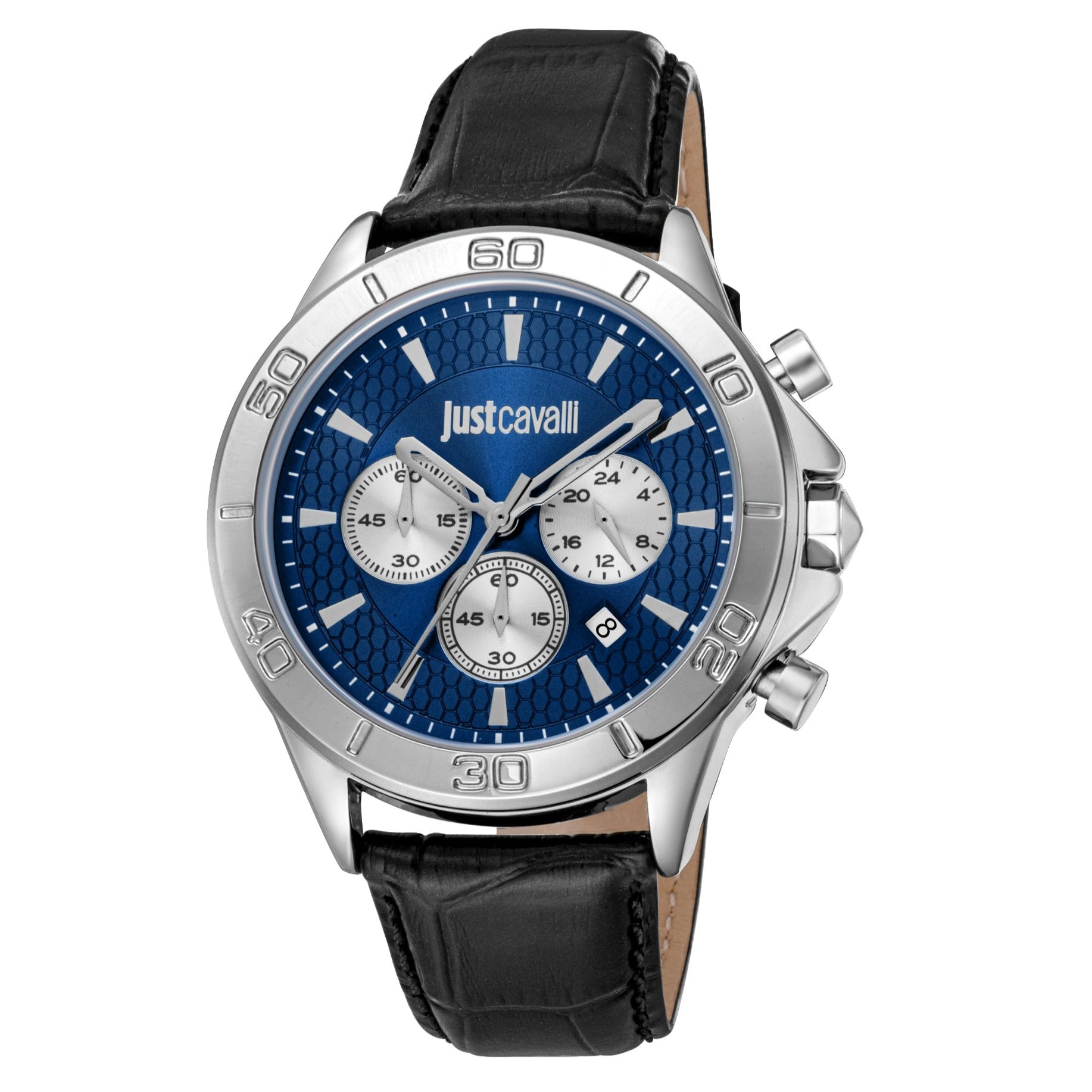 Just Cavalli Young Gents Blue Dial Stainless Steel Silver Case Black Leather Starp Watch