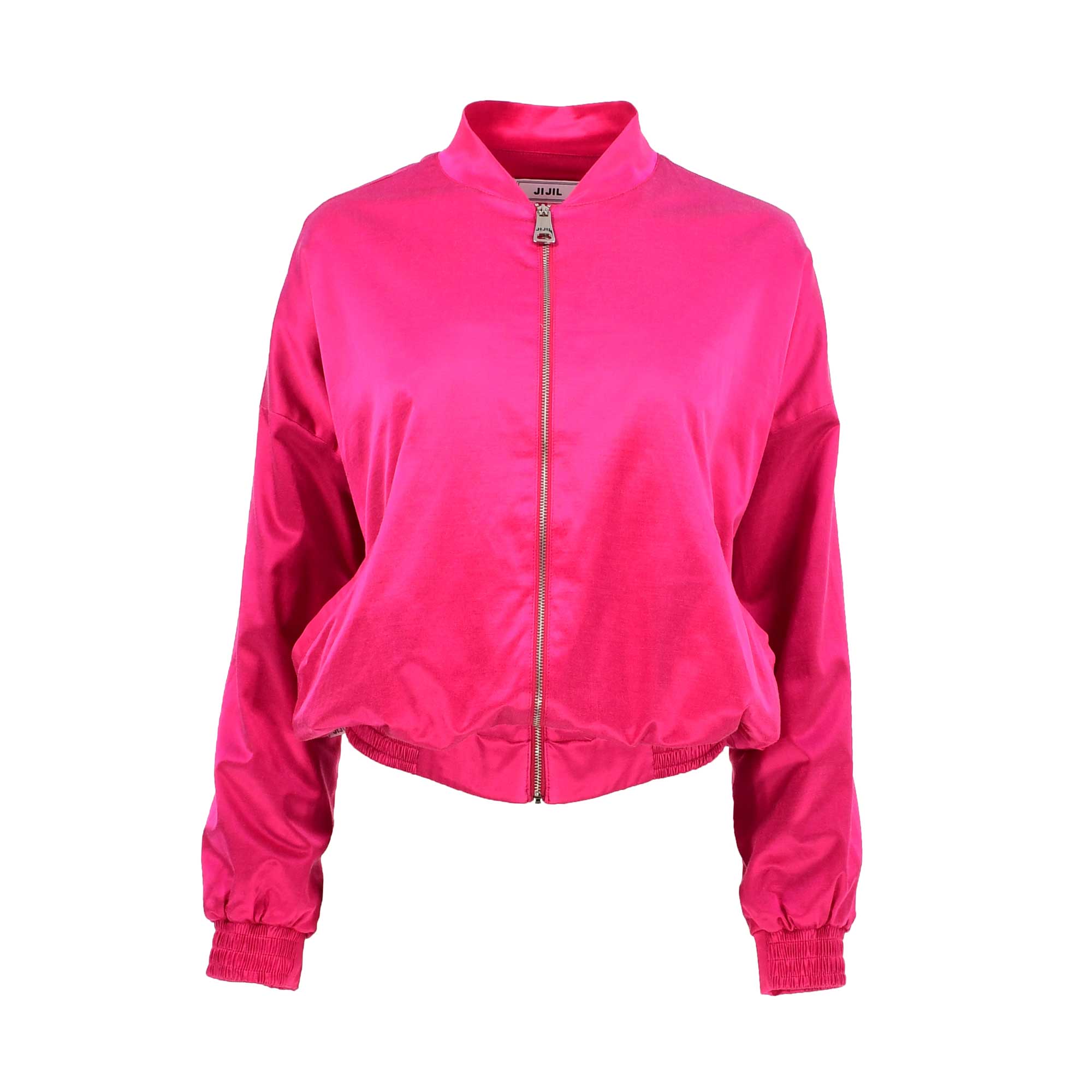 | This exquisite option for a luxurious jacket, which comes from JIJIL, is a wonderful way to inject some flair into the wardrobe you already have. consists of a stand collar at the neck and is provided in a fuchsia color option. It has long sleeves with elastic at the cuffs, and the hemline is elastic as well. It fastens with a zipper across the front of the garment. Not only is it extremely comfortable, but it also has a great look to it, and it is made of an incredible fabric. SPECIFICATION :