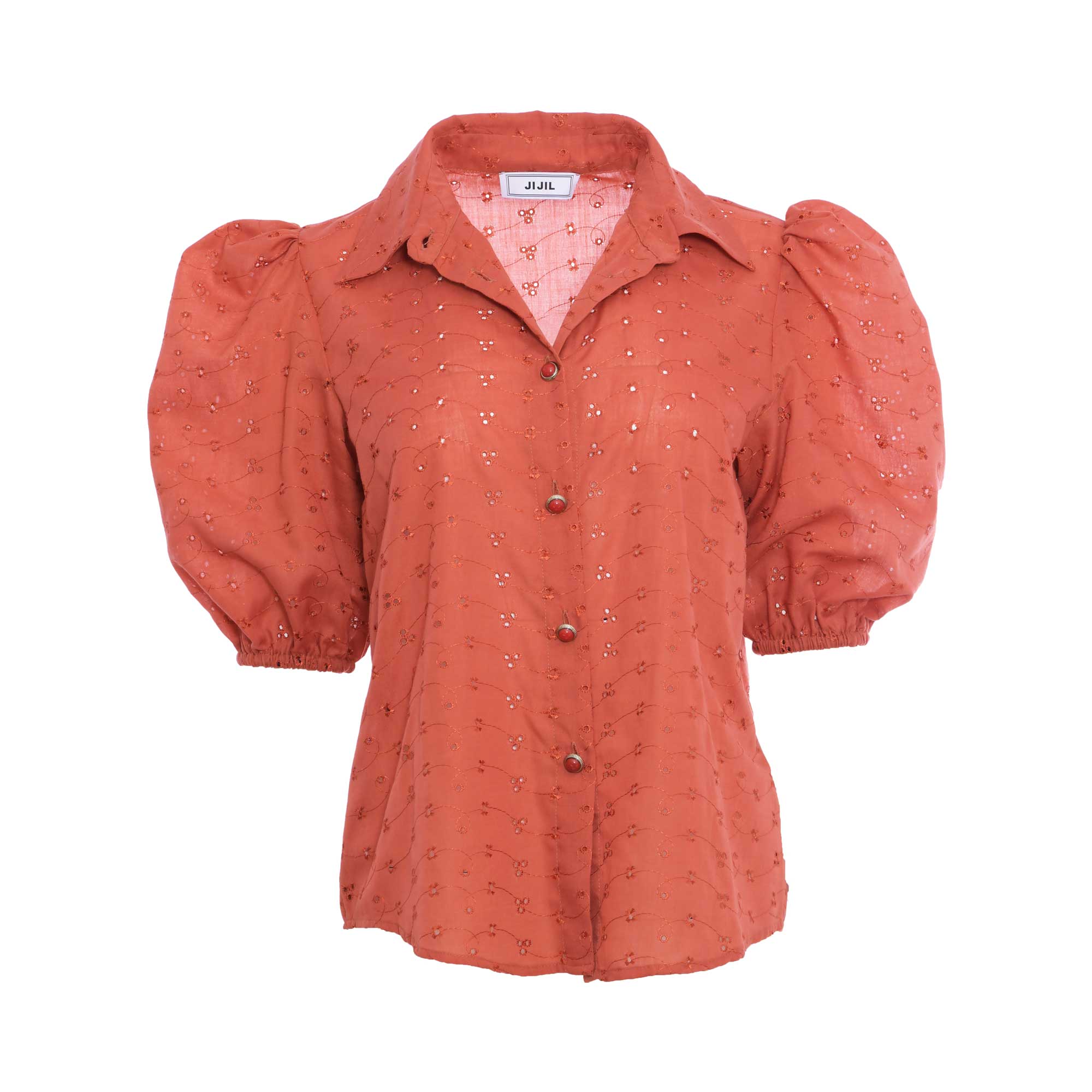 Jijil's Women's Shirt is a classic and elegant piece of fashion that has the perfect blend of style and comfort. It is designed with a collared neckline and front button fastening. It features a fancy button detail and has been crafted in a lightweight fabric to keep you cool during warmer months. The puffed sleeves feature elasticated cuffs, giving them a textured finish that adds an extra touch of sophistication. To complete the look, it has been decorated with a broderie anglaise all over it which helps to make it a truly unique piece. This timeless shirt is a must-have for your summer wardrobe and can easily be dressed up or down for any occasion. SPECIFICATIONS