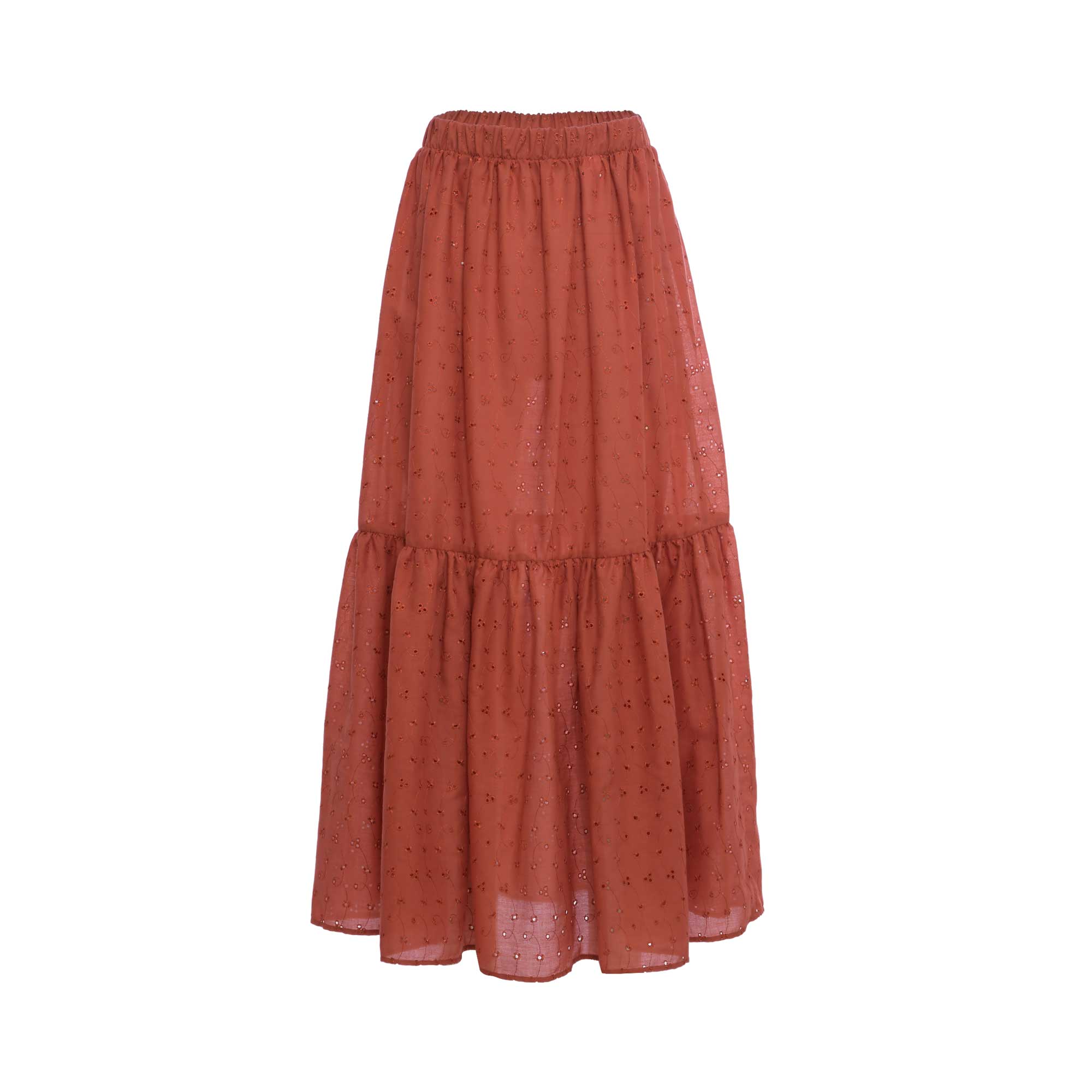 The Jijil Women's Long Skirt is a stylish and eye-catching piece of fashion for any wardrobe. This skirted garment is made from a light fabric that is tiered, making up a full skirt in a beautiful long length. Its main focal point is its stunning all over Broderie Anglaise detailing, which consists of delicate embroidery and cutwork which really enhances the air of femininity of this piece. An elasticated waistband provides a comfortable and secure fit, making it a great choice for days spent on the go. Whether you style it with a casual t-shirt and trainers or a floaty blouse and heels, you are sure to stand out in this eye-catching skirt. SPECIFICATIONS